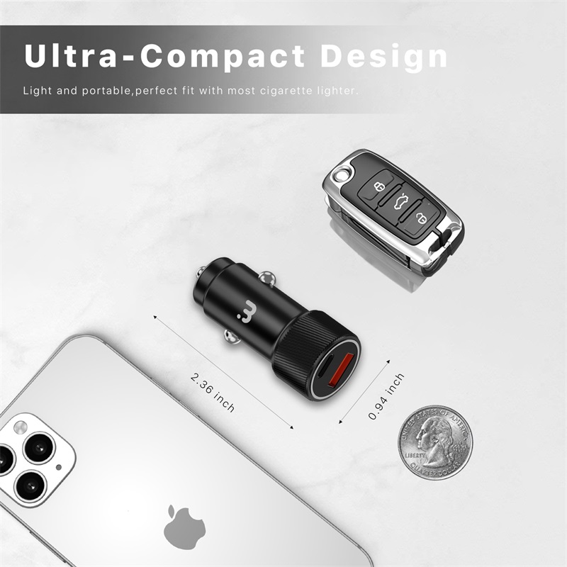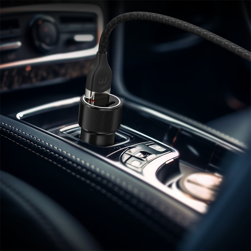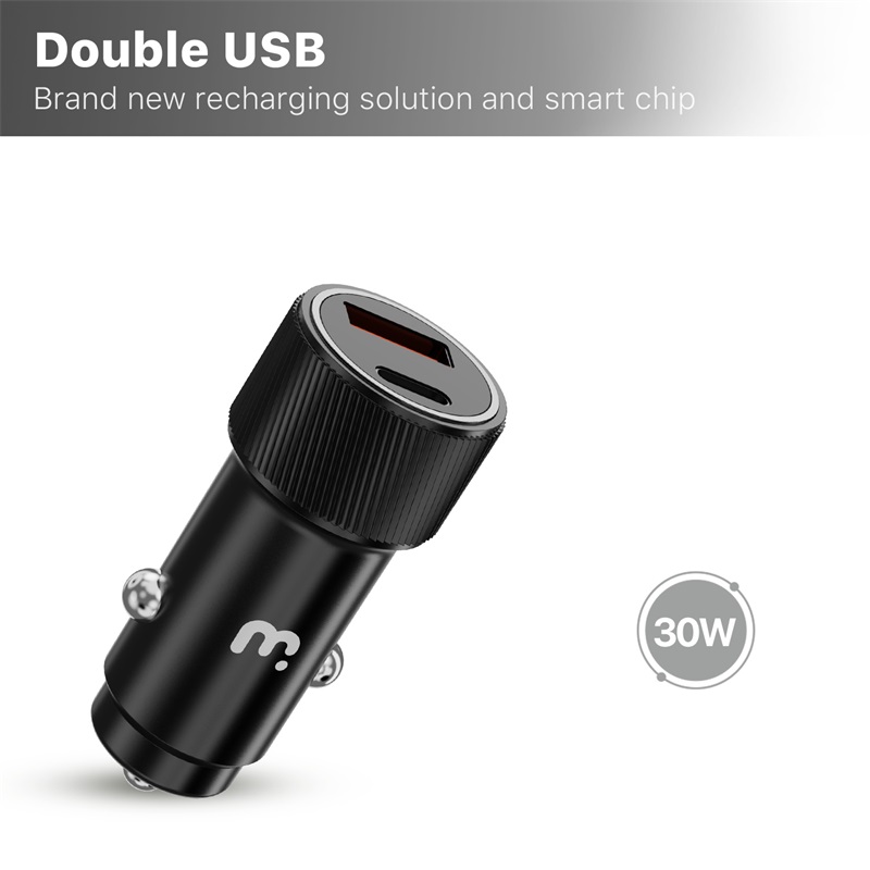 MyBat Pro 2-in-1 Dual Port Quick Power Delivery Car Charger (30W) With USB-C Cable- Black