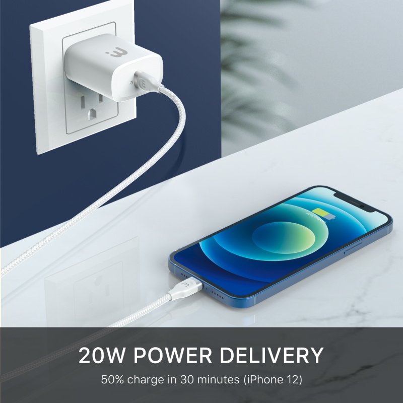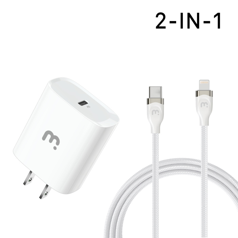 MyBat Pro 2-In-1 Fast Charging Power Delivery Wall Charger (20W) with USB-C to MFi Lightning Cable - White
