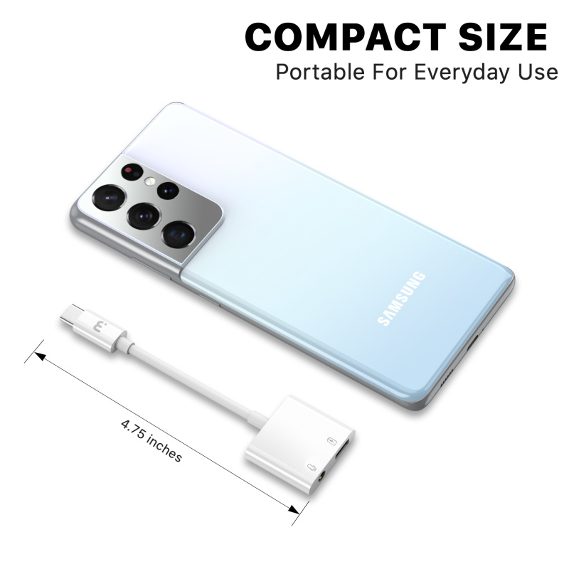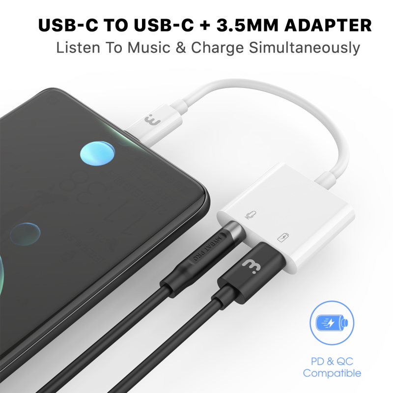 Your customers will no longer have to choose between using their phone's only port for music or charging when you provide the 2-in-1 USB-C Audio Jack Adapter from MyBat Pro. It is available in attractive packaging that makes it stand out on the shelf and shows off the product beautifully, making it an ideal addition to your inventory. This 2-in-1 USB-C Audio Jack Adapter transforms your customer's phone into a multiport hub for connecting and charging multiple devices, headphones, and more! Enhanced with Power Delivery and Quick Charge technologies, the USB-C port delivers 6X the power of regular chargers at 30W, charging your customer's Android device from 0% to 50% in just 30 minutes! Even if your customers' devices are not fast charging compatible, they will still receive the fastest possible charging speeds. Customers can listen to music or make calls seamlessly with a 3.5mm audio jack using their favorite headphones or earbuds. Customers won't have to worry about tangles or excess length with this 3" adapter. It is also renowned for its durability, reinforced relief collar, and flexible protective wire covering. MyBat Pro offers a lifetime warranty for the 2-in-1 USB-C Audio Jack Adapter, ensuring the best quality, performance, and customer satisfaction. Features: 2-in-1 Design Made for USB-C Devices USB-C Connector 3.5mm Auxillary Port Seamless Plug & Play High-Definition Playback Supports Volume & Call Controls 30W USB-C Input Port Power Delivery & Quick Charge Unrivaled Durability Incredible Bend Lifetime Lifetime Warranty