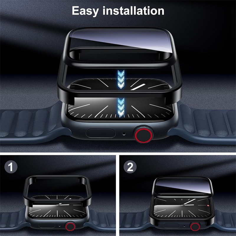 MyBat Pro 3D Full Coverage Tempered Glass Screen Protector with Installation Frame for Apple Watch SE (2022) 44mm/Watch SE 44mm / Watch Series 6 44mm - Black