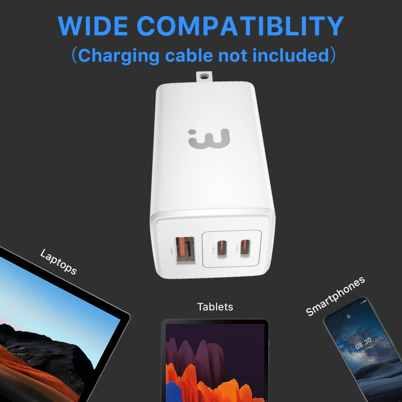 Give your customers the power to charge any mobile device with one of the smallest high-output chargers on the market with the 67W GaN USB-C Charger from MyBat Pro. Powered by a supercharged gallium nitride semiconductor, this 67W GaN USB-C Charger generates 100 times the power of standard silicon chargers. Supporting the latest fast-charging technologies, Power Delivery, and Quick Charge in 2 powerful ports, your customers can fast-charge all their devices simultaneously. With an incredible 67W total max output, this charger can power a 16” Macbook Pro from 0 to 100% in 2 hours and the latest iPhone or Android smartphone in just an hour! As a smaller 67W charger, this ultra-compact and lightweight charger barely takes up any premium space in outlets and can conveniently fit in any bag for rapid charging wherever your customers go! Low heat operation ensures the charger remains cool to touch while providing the highest output! Features: Enhanced with Gallium Nitride (GaN) Fast Charge 3 Devices Simultaneously Power Delivery & Quick Charge Technology 67W USB-C PD 18W USB-A QC Laptop, Tablet & Phone Fast Charge Compatible Folding Prongs Compact & Lightweight Design Low-Heat Operation Incredible Safety-Features Specifications: Input: AC 100-240V 50/60Hz 1.2A Output: USB-C1/C2: 5V/3A, 9V/3A,12V/3A, 15V/3A, 20V/3.35A (67W) USB-A: 5V/3A, 9V/2A, 12V/1.5A (18W) USB-C1+USB-C2: 5V/3A, 9V/3A, 12V/3A, 20V/2.25A (45W) + 5V/3A, 9V/2.22A, 12V/1.67A (20W) USB-C1+USB-A1: 5V/3A, 9V/3A, 12V/3A, 20V/2.25A (45W) + 5V/3A, 9V/2A, 12V/1.5A (18W) USB-C2+USB-A1: 5V/3A USB-C1+USB-C2+USB-A1: 5V/3A, 9V/3A, 12V/3A, 20V/2.25A (45W) + 5V/3A Max Power: 67W Max