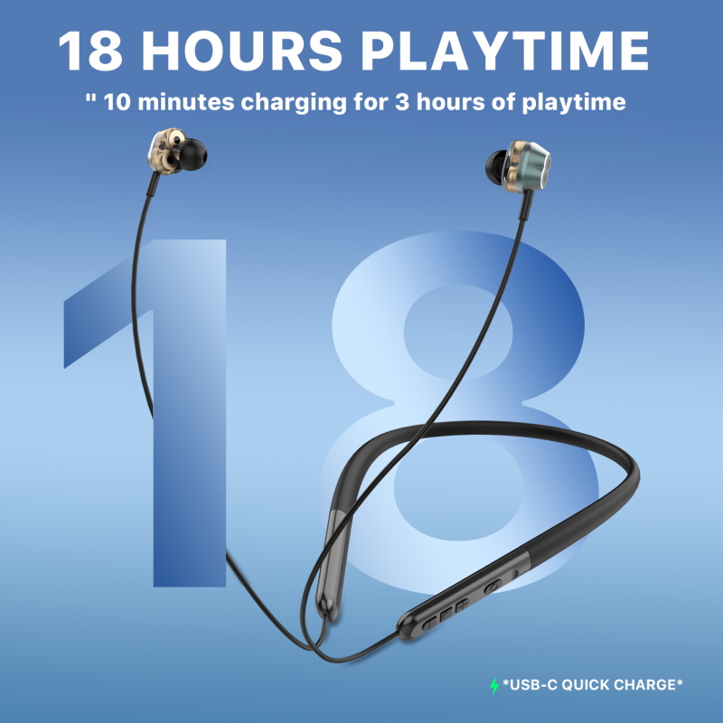 MyBat Pro presents the next generation of wireless headphones that long endurance neck hanging sports earphones with 4 sound producing units. It is available in attractive packaging that makes it stand out on the shelf and shows off the product beautifully, making it an ideal addition to your inventory. The Accelerate Bluetooth Sports Neckband Earbuds is engineered with 4 sound producing units, there are 2 independent sound units on each side that cooperate with each other. Your customers will hear even the most subtle details in their music with authentic lossless high-fidelity sound featuring booming bass, detailed mids, and incredible highs! Using the latest Bluetooth 5.3 technology, they will also enjoy seamless, quick pairing to their smartphones, tablets, or laptops. Extended battery life of up to 18 hours on a single charge provides a full day of non-stop listening. Built-in controls make navigating playlists, taking and making calls, and interacting with voice assistants easier! Accelerate Bluetooth Sports Neckband Earbuds IPX5 waterproof rating ensures that they can withstand any weather, workout, or run. MyBat Pro offers a limited one-year warranty for the Accelerate Bluetooth Sports Neckband Earbuds, ensuring the best quality, performance, and customer satisfaction. Features: High Definition Stereo Sound 4 Sound Producing Units Flexible Bend-Resistant Neckband Wireless Music + Calls Built-In Microphone & Controls Pick Up & Connect Quick Pairing Ultra-Compact & Lightweight Design IPX5 Waterproof & Sweat Resistant Up to 18 Hours Playtime 1-Year Warranty