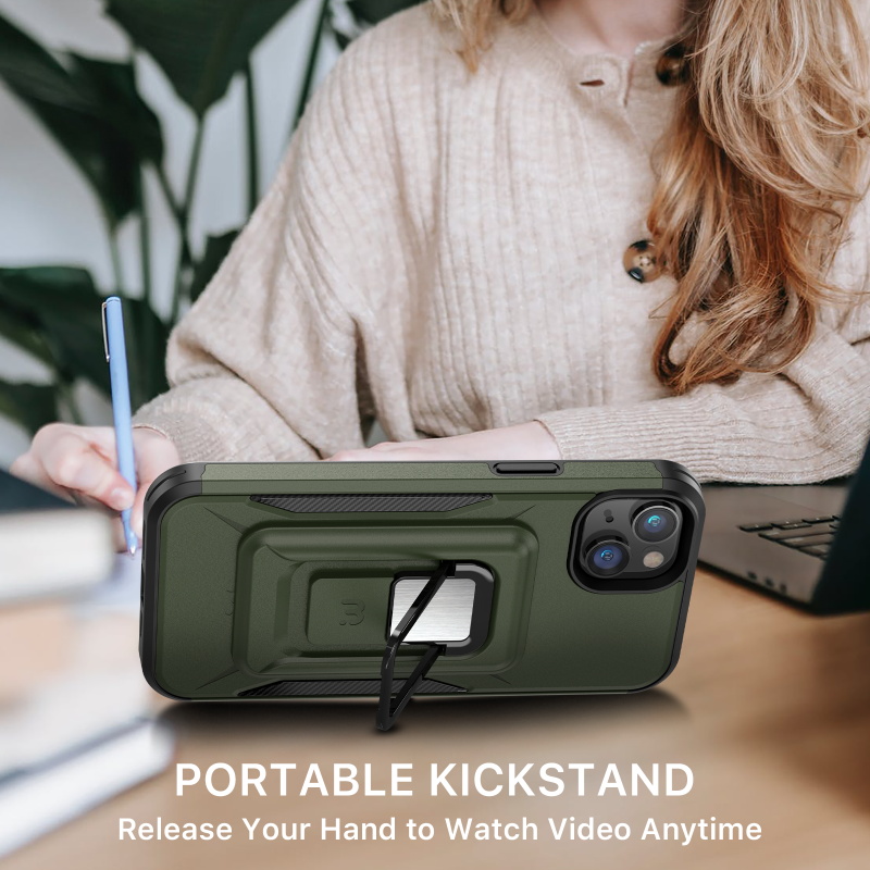 MyBat Pro Antimicrobial Stealth Series MagKick for Apple iPhone 14 (6.1) / 13 (6.1) - Army Green / Black