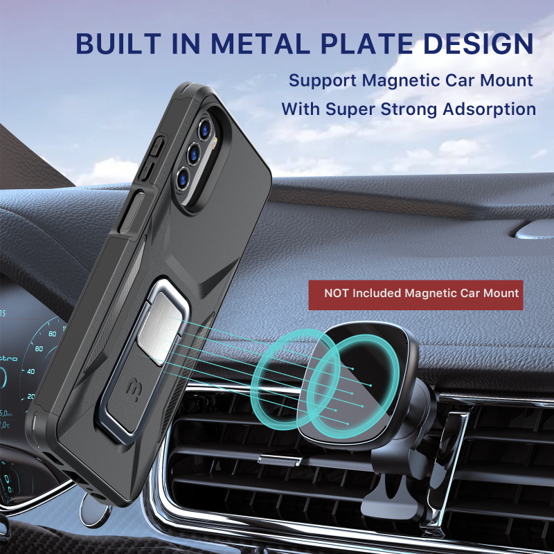 Provide your customers with the protection and ruggedness their for their Motorola Moto G 5G (2022) need to match their active lifestyles with the Black Stealth Series Case from MyBat Pro. It is available in attractive packaging that makes it stand out on the shelf and shows off the product beautifully, making it an ideal addition to your inventory. Designed to protect your customer's Moto G 5G (2022) from accidental scratches, bumps, and drops, the Stealth offers 2X more durability than standard cases as its military-grade durable polycarbonate outer shell and inner padded TPU shell set a new standard in phone safety. Using the stylish and discrete ring holder, users can ward off accidental drops or use it as a kickstand for hands-free media viewing on the go. A metal plate built into the case allows for quick and easy attachment to any magnetic mount, ensuring the case is versatile enough for any journey. The Stealth Military Grade Moto G 5G (2022) Cases are also lined with anti-microbial fabric to keep customers safe from hidden threats such as bacteria and germs. Features: Military-Grade Drop Protection Shock Protection Raised Bezel Edges Non-Slip Bumper Grip Easy Access: Ports & Buttons Anti-Microbial Lining Ring Holder Horizontal Kickstand Built-In Metal Plate Compatible with Magnetic Mounts Lifetime Warranty *** Note: Not Wireless Charging Compatible ***