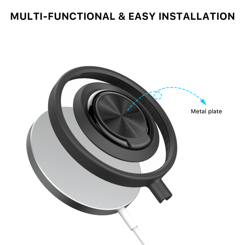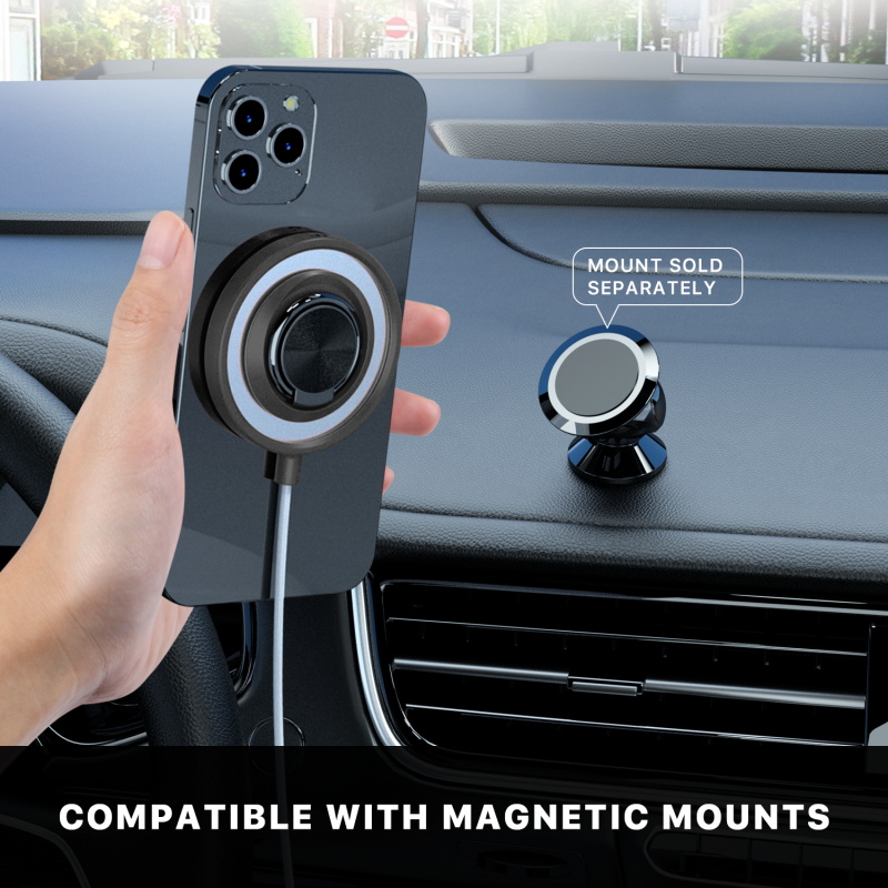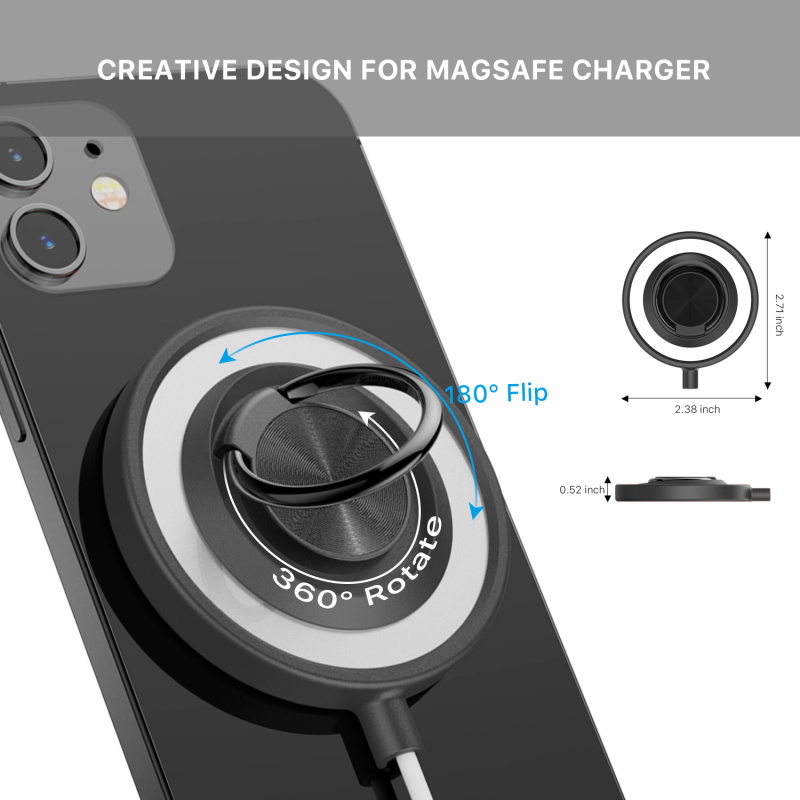 Provide your customers with a better grip on their MagSafe charger and iPhone 12 or 13 with the +AttachMe Ring Stand from MyBat Pro. These handy, and convenient ring stands come in an elegant packaging that not only looks good on the shelves but also displays the product beautifully, making it a great addition to your inventory that will be sure to sell. The +AttachMe Ring Stand simplifies the MagSafe charging process while providing customers with more versatility. Designed to attach to the Apple MagSafe Charger, the black ring-holder grip can be rotated 360° for a handy view while charging. It also serves as a horizontal kickstand, allowing customers to read, watch shows, or play games without holding their device as it charges. The black Ring Stand is also magnetic mount compatible, so your customers don't need to put a metal plate on their phone or charger. Featuring raised edges, non-scratch materials, and high impact and shock resistance, the Ring Stand provides maximum protection for your customers' chargers and phones. MyBat Pro offers a lifetime warranty for the +AttachMe Ring Stand, ensuring the best quality, performance, and customer satisfaction. Features: Designed for Apple MagSafe Charger Easy Attachment & Removal Ring Holder Grip 360° Rotation Horizontal Kickstand Shock & Impact Resistant Scratch-Resistant Materials Magnetic Mount Compatible Ultra-Slim, Lightweight & Minimal Design Quick Installation & Removal Lifetime Warranty *** NOTE: Apple MagSafe Charger sold separately. ***