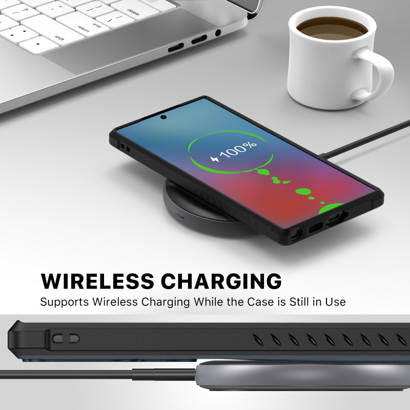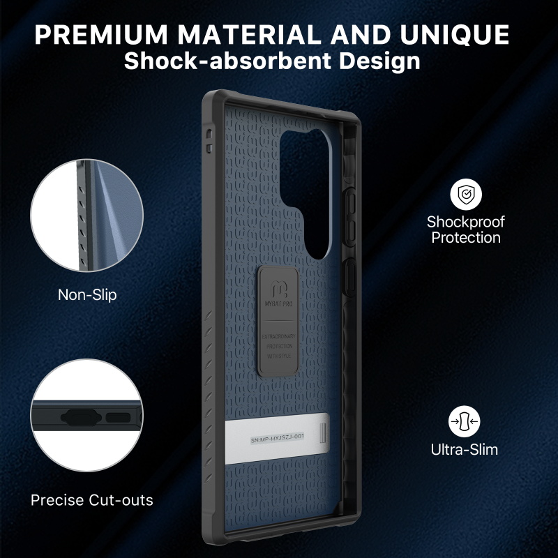 SLIP PROOF & ANTI-FINGERPRINT-Our Anti-Slip Samsung Galaxy case for men is engineered with our professinal technology, an Impact Protection System to cushion your precious phone when it slips out of your hand. Special anti-fingerprint treatment keep this simple case clean and gentlemanlike. SHOCK-ABSORBENT-Ultra lightweight slim Samsung Galaxy S23 Ultra case featuring a “m” shape cushioning shock-absorbing soft core with impact resistant bumpers. The four raised inside protective pads keep the phone case and the phone at a certain distance, which can reduce the impact when the phone falls. A raised bezel lip adds an additional layer of protection for the screen & camera. EMBEDDED ULTRA SLIM KICKSTAND-This Samsung Galaxy S23 Ultra case with stand can be adjusted to 75°(maximum to 65mm wide) to stand horizontally stablely to meet a variety of life and work scenarios. It offers the most optimal viewing points to watch films and alleviates your neck, wrist pain, definitely the go-to for long-sit office workers. WIRELESS CHARGING AVAILABLE-Apple pay & Wireless charging compatible with most 3rd party wireless chargers. MagSafe charging compatible but does not lock onto MagSafe charger. Features: Kickstand Anti-fingerprint Anti-Slip Slim Design Shock-absorbent Raised Bezel Edges Easy Access: Ports & Buttons Wireless Charging Compatible