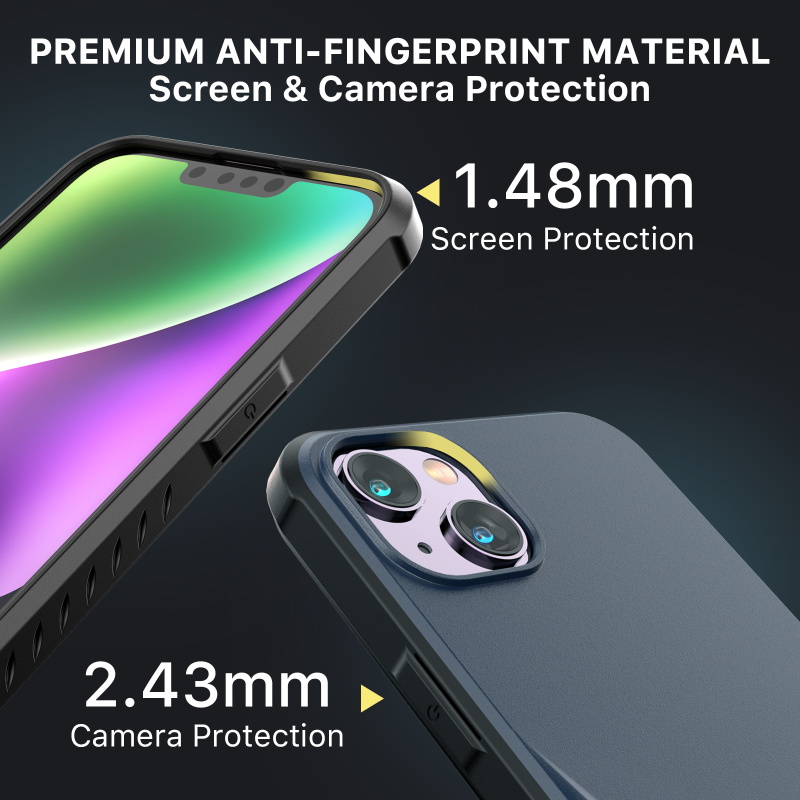 SLIP PROOF & ANTI-FINGERPRINT-Our Anti-Slip iPhone case for men is engineered with our professinal technology, an Impact Protection System to cushion your precious phone when it slips out of your hand. Special anti-fingerprint treatment keep this simple case clean and gentlemanlike. SHOCK-ABSORBENT-Ultra lightweight slim iPhone case featuring a “m” shape cushioning shock-absorbing soft core with impact resistant bumpers. The four raised inside protective pads keep the phone case and the phone at a certain distance, which can reduce the impact when the phone falls. A raised bezel lip adds an additional layer of protection for the screen & camera. EMBEDDED ULTRA SLIM KICKSTAND-This iPhone case with stand can be adjusted to 75° (maximum to 65mm wide) to stand horizontally stablely to meet a variety of life and work scenarios. It offers the most optimal viewing points to watch films and alleviates your neck, wrist pain, definitely the go-to for long-sit office workers. WIRELESS CHARGING AVAILABLE-Apple pay & Wireless charging compatible with most 3rd party wireless chargers. MagSafe charging compatible but does not lock onto MagSafe charger. Also it is iPhone case with screen protector. Features: Kickstand Anti-fingerprint Anti-Slip Slim Design Shock-absorbent Raised Bezel Edges Easy Access: Ports & Buttons Wireless Charging Compatible Includes 9H HD Tempered Glass