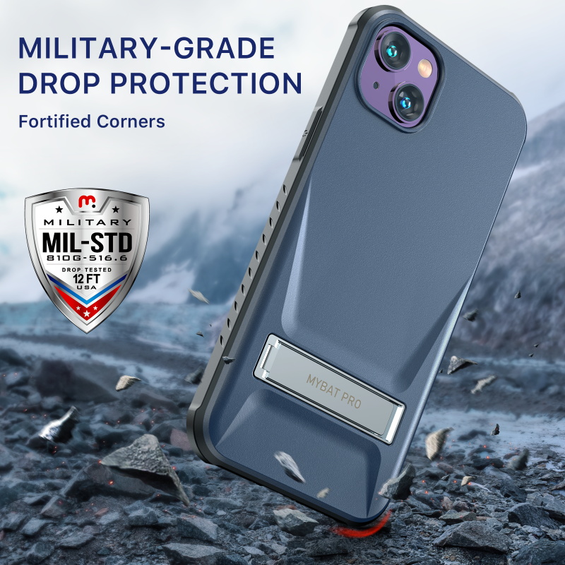 MyBat Pro Beyonder Series Case with Tempered Glass with Kickstand for Apple iPhone 14 Plus (6.7) - Dark Blue