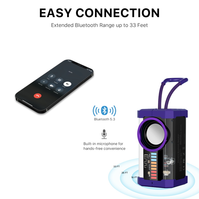 Your customers will love the bold styling and amplified sound of the ClearVibes Portable Speaker from MyBat Pro. Featuring impressive packaging, these attractive, trendy speakers are sure to fly off the shelves, making them an ideal addition to your inventory! The ClearVibes Portable Speaker syncs seamlessly with any of your customers' devices thanks to Bluetooth 5.3 technology so that they can take their DJ skills anywhere. The party crowd will love the speaker's vibrant LED lighting that elevates its aesthetic appeal. Whether they're playing at home or on the go, the ClearVibes can provide up to 6 hours of continuous play on a single charge. As it has a microphone, the speaker also functions as a speakerphone to take calls and watch videos. Lightweight and portable, your customers can carry it in their bag, backpack, or even pocket! MyBat Pro offers a limited one-year warranty for the ClearVibes Speaker, ensuring the best quality, performance, and customer satisfaction. Features: Powerful High-Definition Sound Wireless Music & Calls Built-In Microphone Dazzling LED Light Show Portable & Lightweight Up to 6 HRS of Playtime Limited 1-Year Warranty