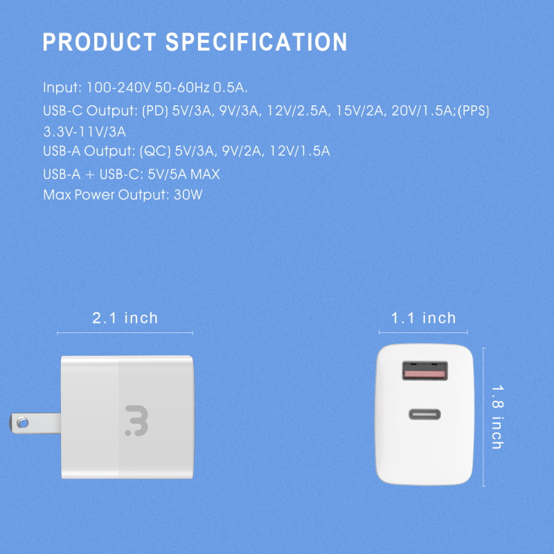 Give your customers the next level of high-speed charging to provide them with revolutionary power for any device with the 30W Dual-Port Wall Charger from MyBat Pro. It is available in attractive packaging that makes it stand out on the shelf and shows off the product beautifully, making it an ideal addition to your inventory. The Dual-Port Wall Charger features 30W of USB-C Power Delivery and Quick Charge fast-charging technology 6X more powerful than traditional chargers. Whether your customers' devices support fast-charging or not, this Dual-Port Wall Charger charges up to 2 devices at once at the highest output. This incredibly high-performance travel charger can power a 13” MacBook Pro from 0 to 100% in 2 hours and the latest iPhone or Android smartphone in just an hour! Your customers will enjoy all the power and speed in a portable, travel-ready design that won't overcrowd their outlets. MyBat Pro offers a limited one-year warranty for the 30W Dual-Port Wall Charger, ensuring the best quality, performance, and customer satisfaction. Features: Fast Charge 2 Devices Simultaneously Power Delivery & Quick Charge Technology 30W USB-C PD Output 18W USB-A QC 3.0 Output Integrated Smart Chip Technology iPhone & Android Fast Charge Compatible Worldwide Voltage Compatibility Ultra-Compact & Lightweight Incredible Safety Features 1-Year Warranty