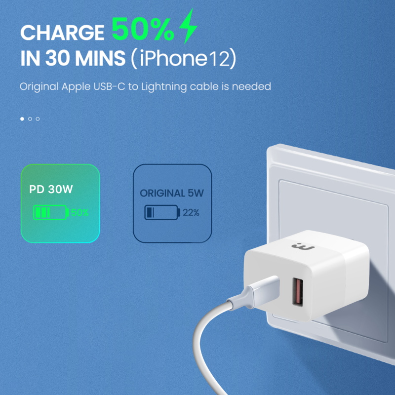 MyBat Pro Dual Port Fast Charging Power Delivery Wall Charger (30W) - White