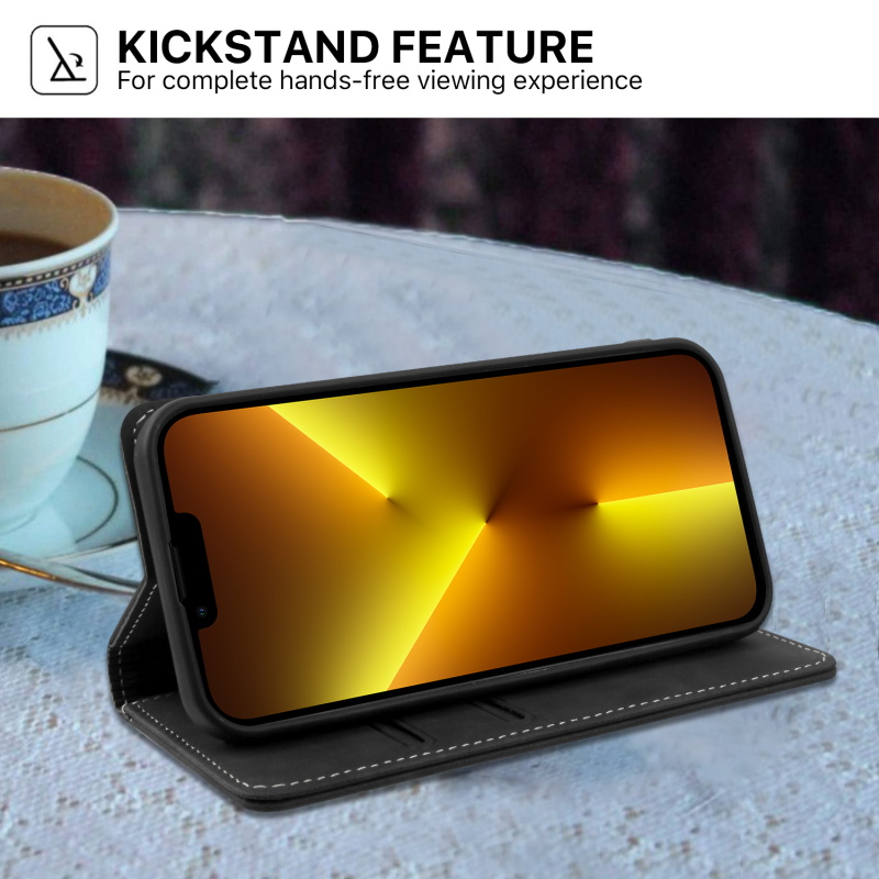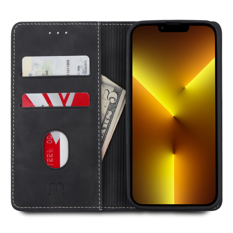 Outfit your customer’s Apple iPhone 13 Pro with top-of-the-line protection and convenience as the black Executive Series Wallet Case from MyBat Pro provides an elegant all-in-one solution to keeping their essentials within reach. It is available in attractive packaging that makes it stand out on the shelf and shows off the product beautifully, making it an ideal addition to your inventory. The Executive Series iPhone 13 Pro Wallet Case’s slim, ultra-slim 3-in-1 design is ideal for professionals on the go. It allows them to securely store 2 of their most important cards, cash, and their iPhone 13 Pro, leaving more room in their pockets and bags. Customers benefit from the high level of security and protection that the protective magnetic closure provides while protecting their valuables. They can also easily catch up on shows and videos while on the go as the Executive Series iPhone 13 Pro Wallet Case folds into a horizontal stand for the perfect hands-free view. Due to its snug fit on their iPhone 13 Pro, customers will enjoy easy access to all buttons and ports. Designed with premium anti-microbial materials, the Executive protects your customer's valuables from all threats, big or small. MyBat Pro offers an extended lifetime warranty for the Executive Series Wallet Case For iPhone 13 Pro, ensuring the best quality, performance, and customer satisfaction. Features: 3-in-1 Design 2 Card Slots + Cash Storage Protective Inner Phone Case Raised Bezel Edges Easy Access: Ports, Buttons & Cards Foldable Horizontal Stand Secure Magnetic Closure Ultra-Slim, Lightweight & Minimal Design Premium Anti-Microbial Materials Quick Installation & Removal Lifetime Warranty