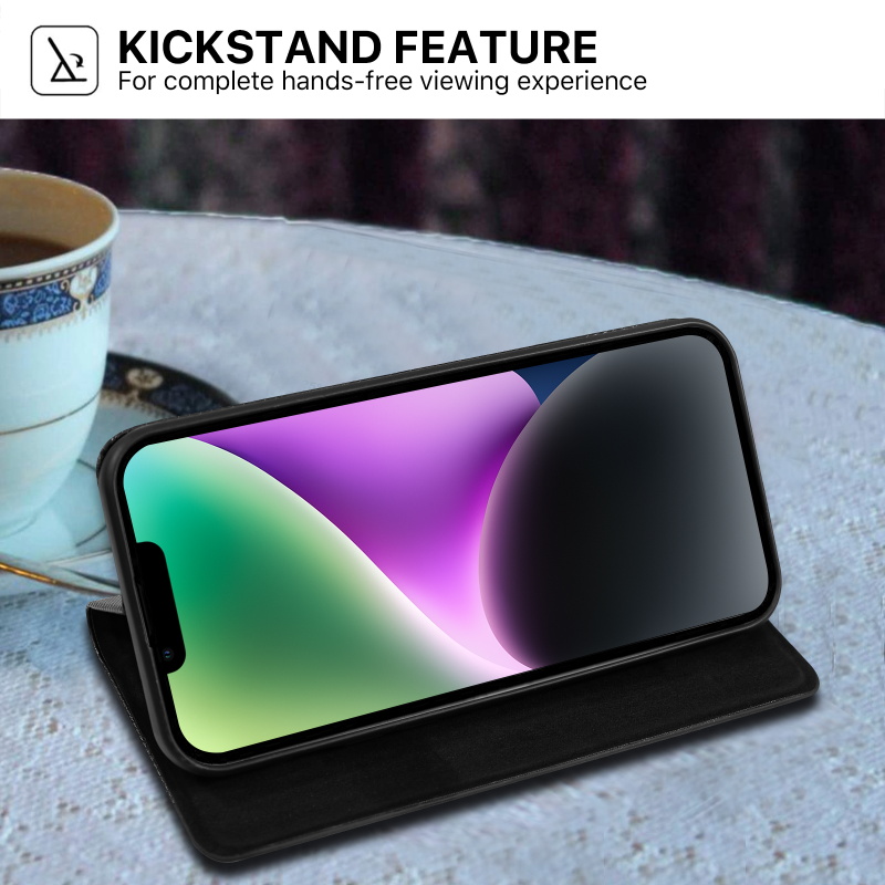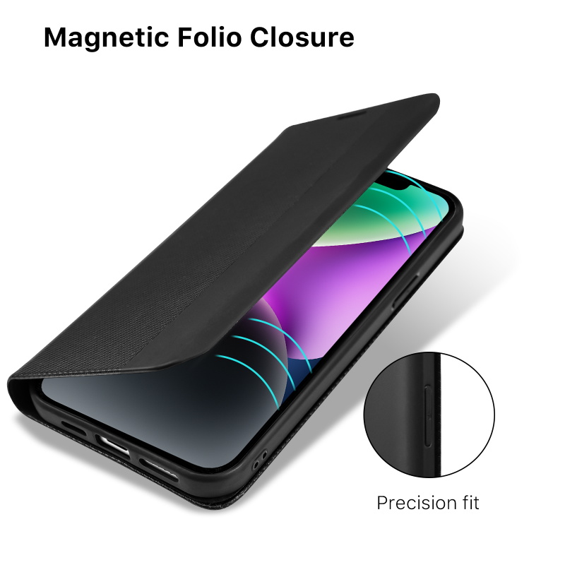 Outfit your customer’s Apple iPhone 14 (6.1) with top-of-the-line protection and convenience as the black Executive Series Wallet Case from MyBat Pro provides an elegant all-in-one solution to keeping their essentials within reach. It is available in attractive packaging that makes it stand out on the shelf and shows off the product beautifully, making it an ideal addition to your inventory. The Executive Series Apple iPhone 14 (6.1) Wallet Case’s slim, ultra-slim 3-in-1 design is ideal for professionals on the go. It allows them to securely store 2 of their most important cards, cash, and their iPhone 14 (6.1), leaving more room in their pockets and bags. Customers benefit from the high level of security and protection that the protective magnetic closure provides while protecting their valuables. They can also easily catch up on shows and videos while on the go as the Executive Series iPhone 14 (6.1) Wallet Case folds into a horizontal stand for the perfect hands-free view. Due to its snug fit on their iPhone 14 (6.1), customers will enjoy easy access to all buttons and ports. Designed with premium anti-microbial materials, the Executive protects your customer's valuables from all threats, big or small. MyBat Pro offers an extended lifetime warranty for the Executive Series Wallet Case For iPhone 14 (6.1), ensuring the best quality, performance, and customer satisfaction. Features: 3-in-1 Design 2 Card Slots + Cash Storage Protective Inner Phone Case Raised Bezel Edges Easy Access: Ports, Buttons & Cards Foldable Horizontal Stand Secure Magnetic Closure Ultra-Slim, Lightweight & Minimal Design Premium Anti-Microbial Materials Quick Installation & Removal Lifetime Warranty