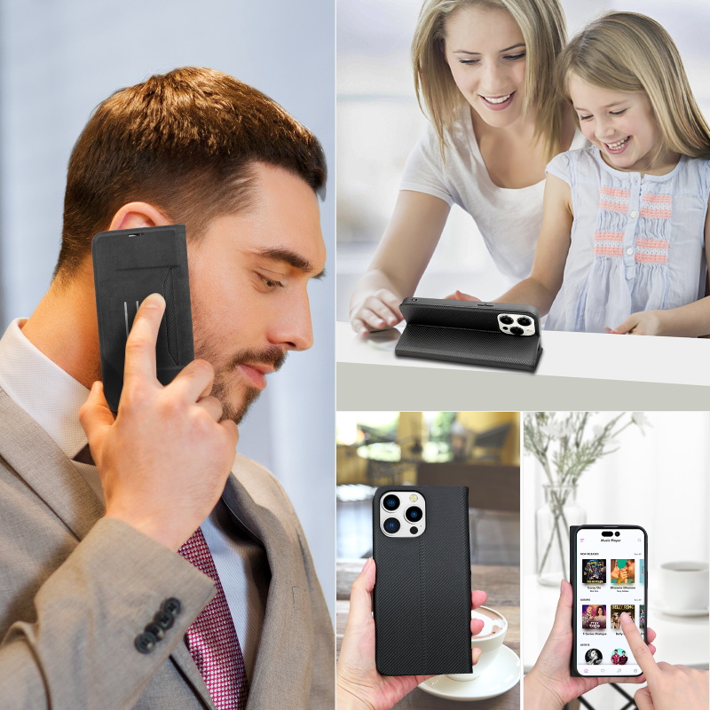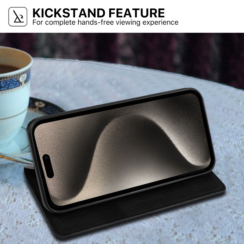 Outfit your customer’s Apple iPhone 15 Pro Max (6.7) with top-of-the-line protection and convenience as the black Executive Series Wallet Case from MyBat Pro provides an elegant all-in-one solution to keeping their essentials within reach. It is available in attractive packaging that makes it stand out on the shelf and shows off the product beautifully, making it an ideal addition to your inventory. The Executive Series iPhone 15 Pro Max (6.7) Wallet Case’s slim, ultra-slim 3-in-1 design is ideal for professionals on the go. It allows them to securely store 2 of their most important cards, cash, and their iPhone 15 Pro Max (6.7), leaving more room in their pockets and bags. Customers benefit from the high level of security and protection that the protective magnetic closure provides while protecting their valuables. They can also easily catch up on shows and videos while on the go as the Executive Series iPhone 15 Pro Max (6.7) Wallet Case folds into a horizontal stand for the perfect hands-free view. Due to its snug fit on their iPhone 15 Pro Max (6.7), customers will enjoy easy access to all buttons and ports. Designed with premium anti-microbial materials, the Executive protects your customer's valuables from all threats, big or small. MyBat Pro offers an extended lifetime warranty for the Executive Series Wallet Case For iPhone 15 Pro Max (6.7), ensuring the best quality, performance, and customer satisfaction. Features: 3-in-1 Design 2 Card Slots + Cash Storage Protective Inner Phone Case Raised Bezel Edges Easy Access: Ports, Buttons & Cards Foldable Horizontal Stand Secure Magnetic Closure Ultra-Slim, Lightweight & Minimal Design Premium Anti-Microbial Materials Quick Installation & Removal Lifetime Warranty