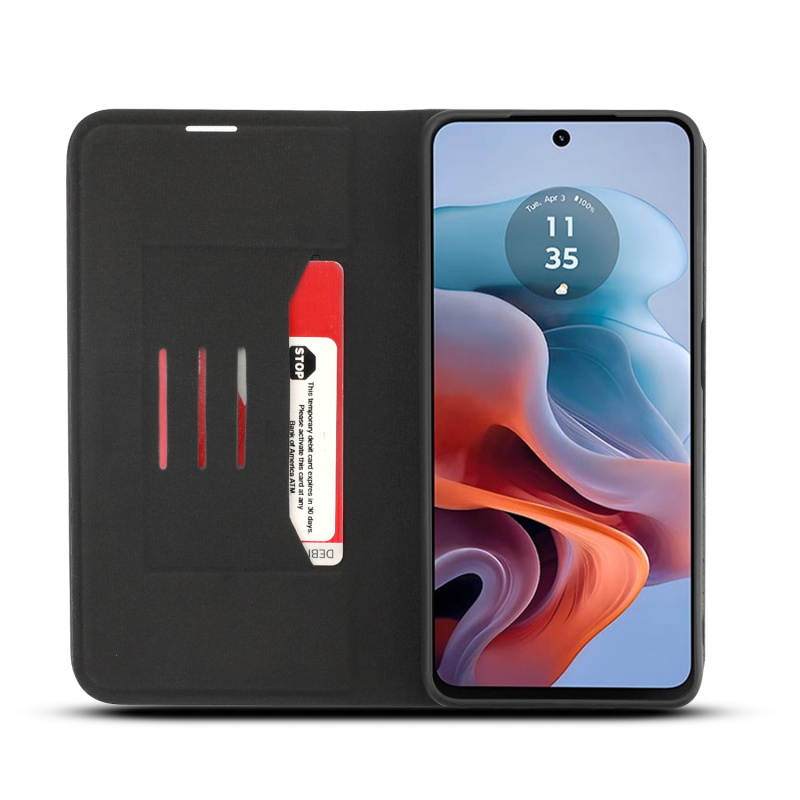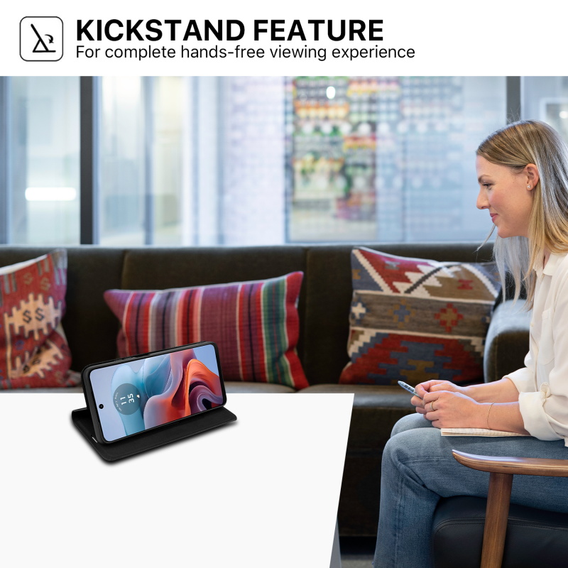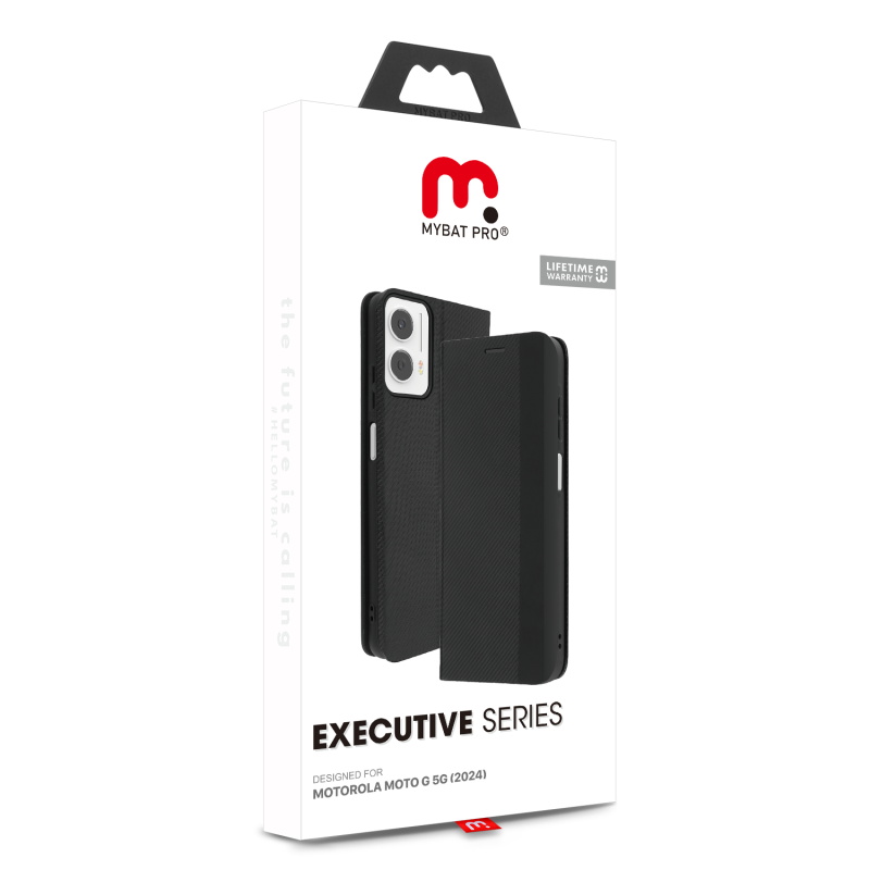 Outfit your customer’s Motorola Moto G 5G (2024) with top-of-the-line protection and convenience as the black Executive Series Wallet Case from MyBat Pro provides an elegant all-in-one solution to keeping their essentials within reach. It is available in attractive packaging that makes it stand out on the shelf and shows off the product beautifully, making it an ideal addition to your inventory.The Executive Series Moto G 5G (2024) Wallet Case’s slim, ultra-slim 3-in-1 design is ideal for professionals on the go. It allows them to securely store 2 of their most important cards, cash, and their Moto G 5G (2024) , leaving more room in their pockets and bags. Customers benefit from the high level of security and protection that the protective magnetic closure provides while protecting their valuables. They can also easily catch up on shows and videos while on the go as the Executive Series Moto G 5G (2024) Wallet Case folds into a horizontal stand for the perfect hands-free view. Due to its snug fit on their Moto G 5G (2024) , customers will enjoy easy access to all buttons and ports. Designed with premium anti-microbial materials, the Executive protects your customer's valuables from all threats, big or small.MyBat Pro offers an extended lifetime warranty for the Executive Series Wallet Case For Moto G 5G (2024) , ensuring the best quality, performance, and customer satisfaction.Features:3-in-1 Design2 Card Slots + Cash StorageProtective Inner Phone CaseRaised Bezel EdgesEasy Access: Ports, Buttons & CardsFoldable Horizontal StandSecure Magnetic ClosureUltra-Slim, Lightweight & Minimal DesignPremium Anti-Microbial MaterialsQuick Installation & RemovalLifetime Warranty