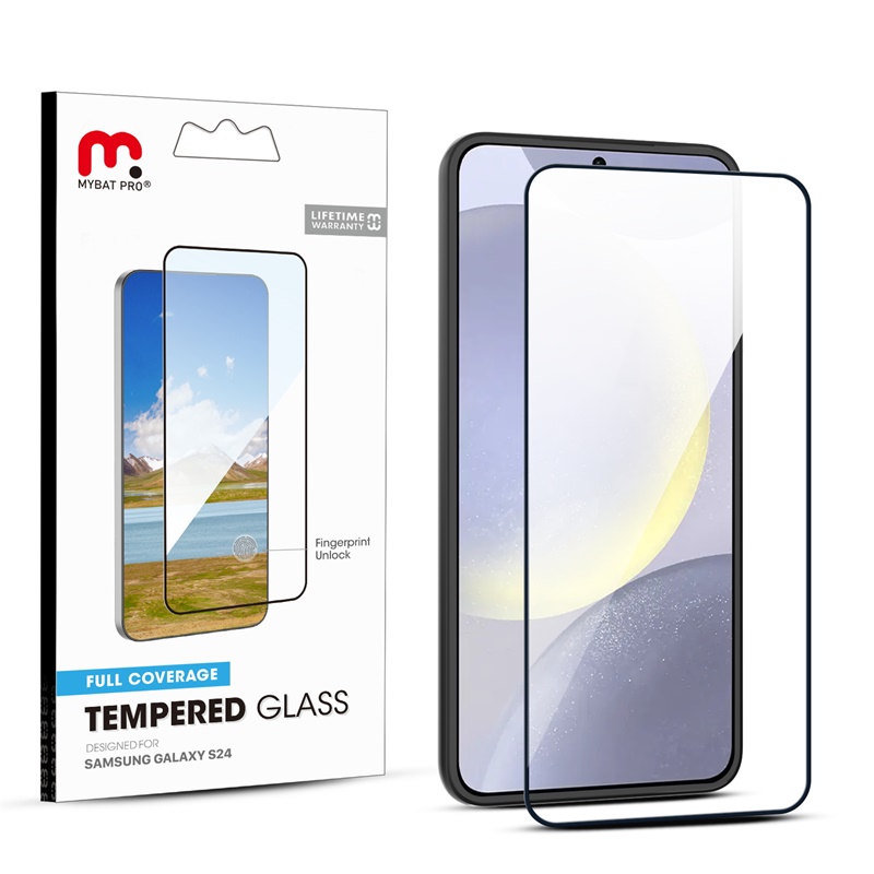 MyBat Pro Full Coverage Tempered Glass Screen Protector (Fingerprint Unlock) for Samsung Galaxy S24 - Black