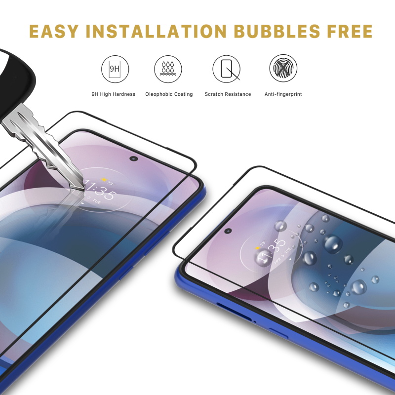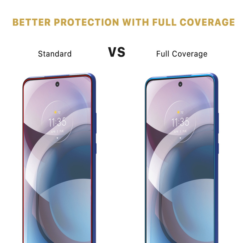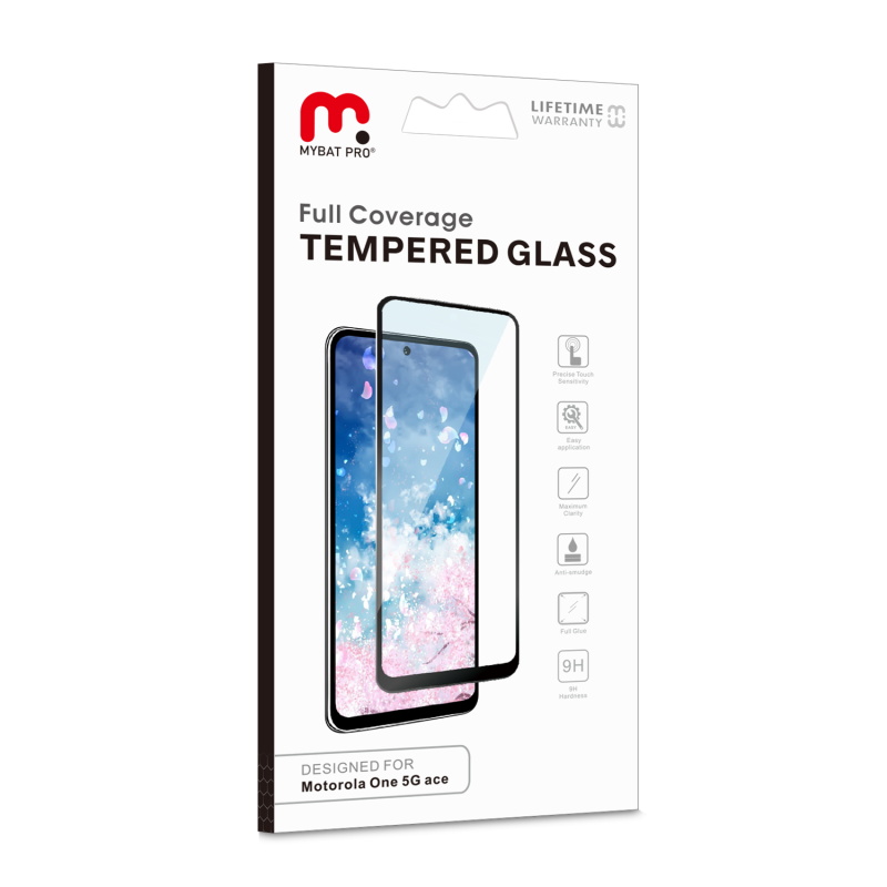 Provide your customer’s Motorola One 5G Ace with edge-to-edge protection from the unexpected as MyBat Pro’s Full Coverage Tempered Glass Screen Protector provides the perfect preventative barrier between their phone's precious screen and the elements. It is available in attractive packaging that makes it stand out on the shelf and shows off the product beautifully, making it an ideal addition to your inventory. MyBat Pro’s One 5G Ace Full Coverage Tempered Glass Screen Protector offers your customer’s phone a comprehensive multi-layer defense 5X stronger than standard glass while delivering diamond level 9H hardness. Installing it is easy and leaves no air bubbles or distortions, only high-definition clarity. Despite being only 0.33mm thick and extremely lightweight, customers' One 5G Ace screens will have maximum scratch, drop, impact, and shatter protection. The oleophobic coating will ensure that they will never have to worry about smudges, fingerprints, or dirt littering their screen again. The One 5G Ace Full Coverage Tempered Glass Screen Protector offers a perfect fit without limiting any touch sensitivity, even with a case on. MyBat Pro offers an extended lifetime warranty for the Full Coverage Tempered Glass Screen Protector for One 5G Ace, ensuring the best quality, performance, and customer satisfaction. Features: Edge-To-Edge Full Coverage 9H Hardness Rating Multi-Layered 5X Stronger Than Standard Glass Scratch Resistant Impact & Shatter Protection Oleophobic Anti-Fingerprint Coating High-Definition Screen Clarity Incredibly Thin: 0.33mm Rounded Edges High-Response Touch Sensitivity Easy Bubble-Free Application Lifetime Warranty