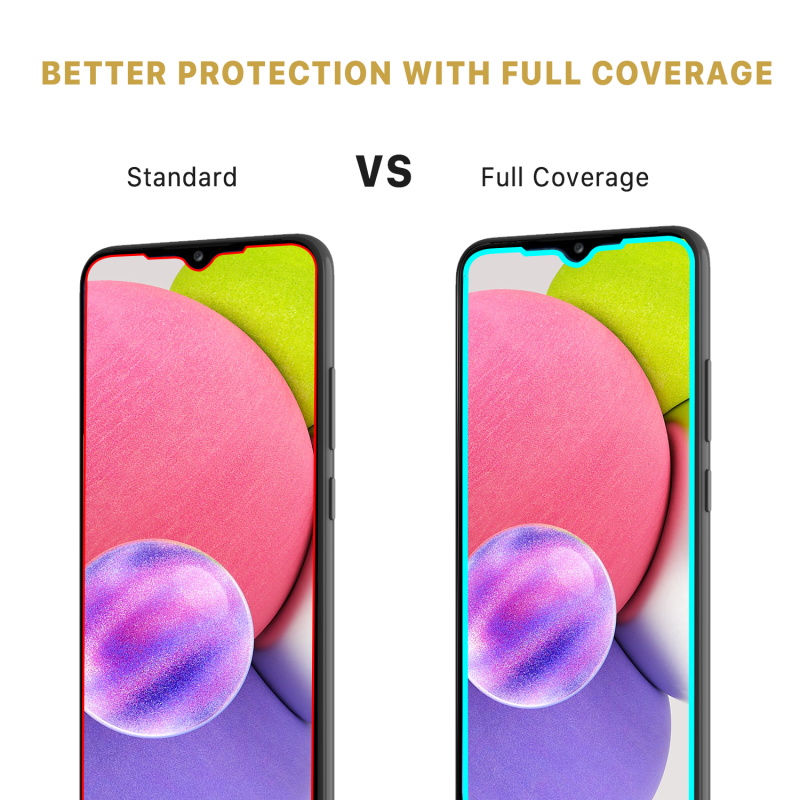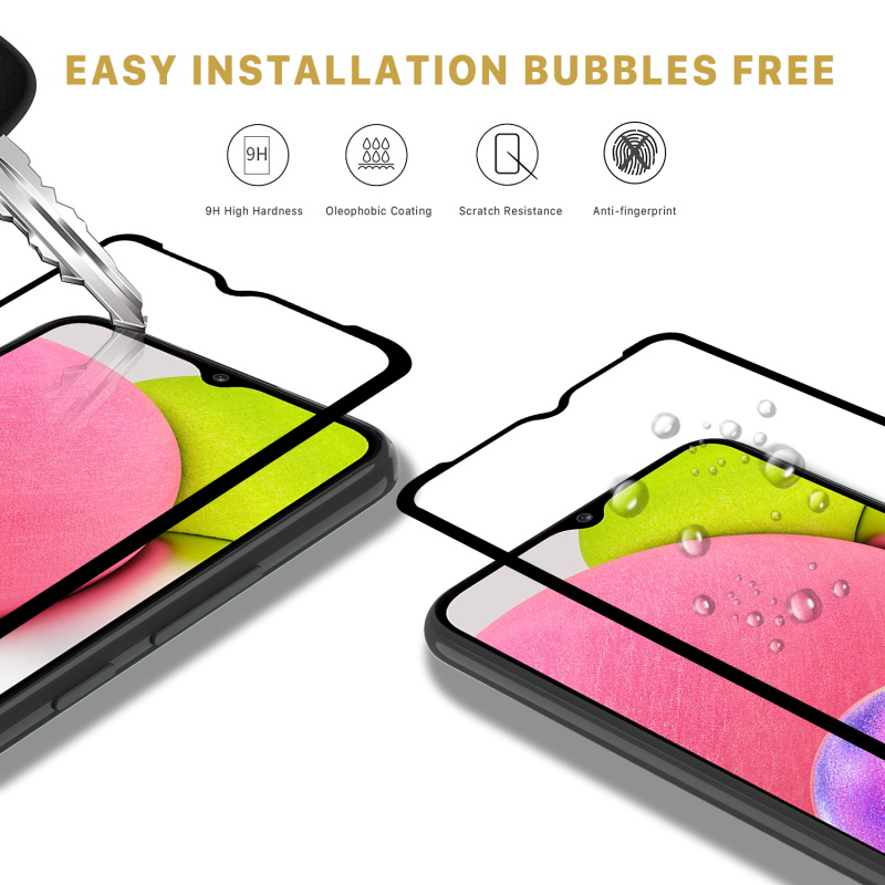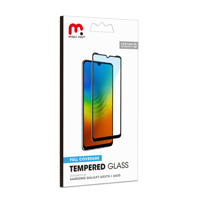 Provide your customer’s Samsung Galaxy A037U / A03S with edge-to-edge protection from the unexpected as MyBat Pro’s Full Coverage Tempered Glass Screen Protector provides the perfect preventative barrier between their phone's precious screen and the elements. It is available in attractive packaging that makes it stand out on the shelf and shows off the product beautifully, making it an ideal addition to your inventory. MyBat Pro’s Galaxy A037U / A03S Full Coverage Tempered Glass Screen Protector offers your customer’s phone a comprehensive multi-layer defense 5X stronger than standard glass while delivering diamond level 9H hardness. Installing it is easy and leaves no air bubbles or distortions, only high-definition clarity. Despite being only 0.33mm thick and extremely lightweight, customers' Galaxy A037U / A03S screens will have maximum scratch, drop, impact, and shatter protection. The oleophobic coating will ensure that they will never have to worry about smudges, fingerprints, or dirt littering their screen again. The Galaxy A037U / A03S Full Coverage Tempered Glass Screen Protector offers a perfect fit without limiting any touch sensitivity, even with a case on. MyBat Pro offers an extended lifetime warranty for the Full Coverage Tempered Glass Screen Protector for Galaxy A037U / A03S, ensuring the best quality, performance, and customer satisfaction. Features: Edge-To-Edge Full Coverage 9H Hardness Rating Multi-Layered 5X Stronger Than Standard Glass Scratch Resistant Impact & Shatter Protection Oleophobic Anti-Fingerprint Coating High-Definition Screen Clarity Incredibly Thin: 0.33mm Rounded Edges High-Response Touch Sensitivity Easy Bubble-Free Application Lifetime Warranty