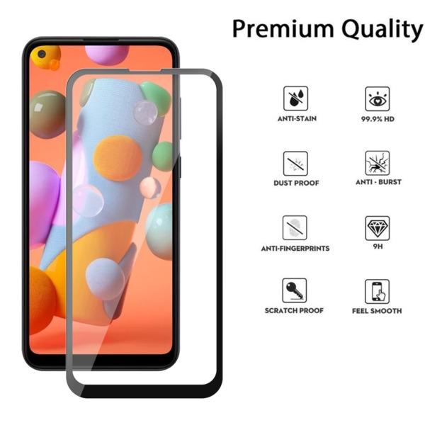 Provide your customer’s Samsung Galaxy A11 with edge-to-edge protection from the unexpected as MyBat Pro’s Full Coverage Tempered Glass Screen Protector provides the perfect preventative barrier between their phone's precious screen and the elements. It is available in attractive packaging that makes it stand out on the shelf and shows off the product beautifully, making it an ideal addition to your inventory. MyBat Pro’s Galaxy A11 Full Coverage Tempered Glass Screen Protector offers your customer’s phone a comprehensive multi-layer defense 5X stronger than standard glass while delivering diamond level 9H hardness. Installing it is easy and leaves no air bubbles or distortions, only high-definition clarity. Despite being only 0.33mm thick and extremely lightweight, customers' Galaxy A11 screens will have maximum scratch, drop, impact, and shatter protection. The oleophobic coating will ensure that they will never have to worry about smudges, fingerprints, or dirt littering their screen again. The Galaxy A11 Full Coverage Tempered Glass Screen Protector offers a perfect fit without limiting any touch sensitivity, even with a case on. MyBat Pro offers an extended lifetime warranty for the Full Coverage Tempered Glass Screen Protector for Galaxy A11, ensuring the best quality, performance, and customer satisfaction. Features: Edge-To-Edge Full Coverage 9H Hardness Rating Multi-Layered 5X Stronger Than Standard Glass Scratch Resistant Impact & Shatter Protection Oleophobic Anti-Fingerprint Coating High-Definition Screen Clarity Incredibly Thin: 0.33mm Rounded Edges High-Response Touch Sensitivity Easy Bubble-Free Application Lifetime Warranty