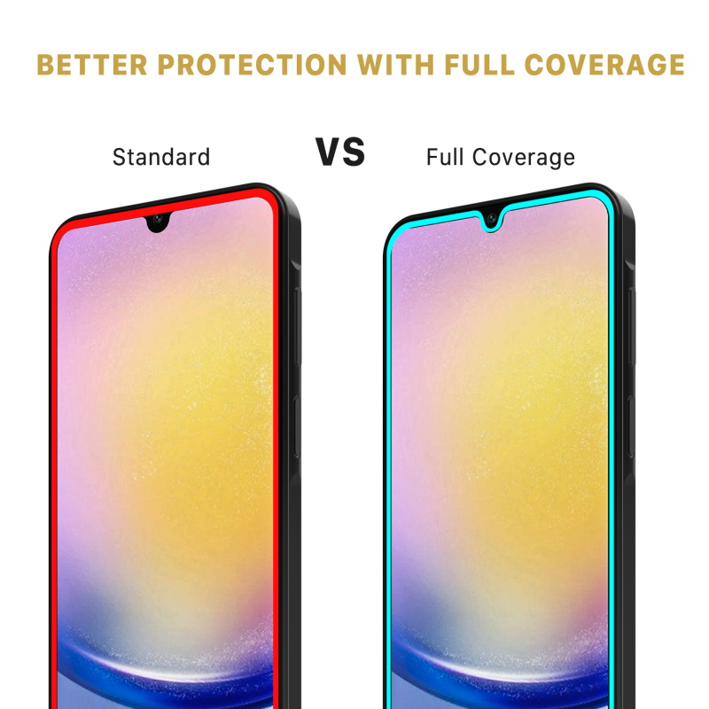 Provide your customer’s Galaxy A25 5G with edge-to-edge protection from the unexpected as MyBat Pro’s Full CoverageTempered Glass Screen Protector provides the perfect preventative barrier between their phone's precious screen and the elements. It is available in attractive packaging that makes it stand out on the shelf and shows off the product beautifully, making it an ideal addition to your inventory. MyBat Pro’s Galaxy A25 5G Full Coverage Tempered Glass Screen Protector offers your customer’s phone a comprehensive multi-layer defense 5X stronger than standard glass while delivering diamond level 9H hardness. Installing it is easy and leaves no air bubbles or distortions, only high-definition clarity. Despite being only 0.33mm thick and extremely lightweight, customers' Galaxy A25 5G screens will have maximum scratch, drop, impact, and shatter protection. The oleophobic coating will ensure that they will never have to worry about smudges, fingerprints, or dirt littering their screen again. The Galaxy A25 5G Full Coverage Tempered Glass Screen Protector offers a perfect fit without limiting any touch sensitivity, even with a case on. MyBat Pro offers an extended lifetime warranty for the Full Coverage Tempered Glass Screen Protector for Galaxy A25 5G, ensuring the best quality, performance, and customer satisfaction. Features: Edge-To-Edge Full Coverage 9H Hardness Rating Multi-Layered 5X Stronger Than Standard Glass Scratch Resistant Impact & Shatter Protection Oleophobic Anti-Fingerprint Coating High-Definition Screen Clarity Incredibly Thin: 0.33mm Rounded Edges High-Response Touch Sensitivity Easy Bubble-Free Application Lifetime Warranty