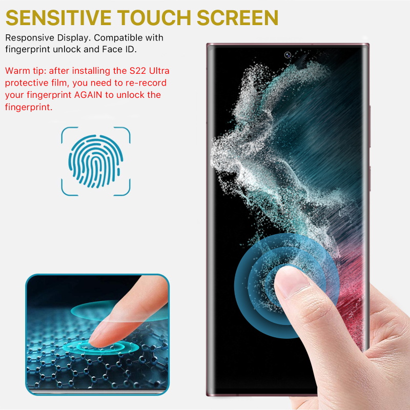 Provide your customer’s Samsung Galaxy S22 Ultra with edge-to-edge coverage and protection from the unexpected as MyBat Pro’s Full Curve Coverage Tempered Glass Screen Protector provides the perfect preventative barrier between their phone's precious screen and the elements. It is available in attractive packaging that makes it stand out on the shelf and shows off the product beautifully, making it an ideal addition to your inventory. MyBat Pro’s Galaxy S22 Ultra's Full Curve Coverage Tempered Glass Screen Protector offers your customer’s phone a comprehensive curved multi-layered defense 5X stronger than standard glass while delivering diamond level 9H hardness. Installing it is easy and leaves no air bubbles or distortions, only high-definition clarity. Despite being only 0.33mm thick and extremely lightweight, customers' Galaxy S22 Ultra screens will have maximum scratch, drop, impact, and shatter protection. EZ Fingerprint Unlock makes it easy for your customers to access their phone at any time while the premium oleophobic coating ensures they'll never have to worry about smudges, fingerprints, or dirt littering their screen. The Galaxy S22 Ultra Full Curve Coverage Tempered Glass Screen Protector offers a perfect fit without limiting any touch sensitivity, even with a case on. MyBat Pro offers an extended lifetime warranty for the Full Curve Coverage Tempered Glass Screen Protector for Galaxy S22 Ultra, ensuring the best quality, performance, and customer satisfaction. Features: Multi-Layered 5X Stronger Than Glass Edge-To-Edge Coverage 2.5D Curved Corners Scratch Resistant Impact & Shatter Protection EZ Fingerprint Unlock Oleophobic Anti-Fingerprint Coating High-Definition Clarity Incredibly Thin: 0.33mm Easy Bubble-Free Application Lifetime Warranty