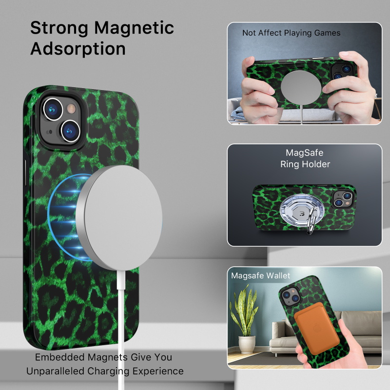 MyBat Pro Fuse Series MagSafe Case for Apple iPhone 14 (6.1) / 13 (6.1) - Green Leopard