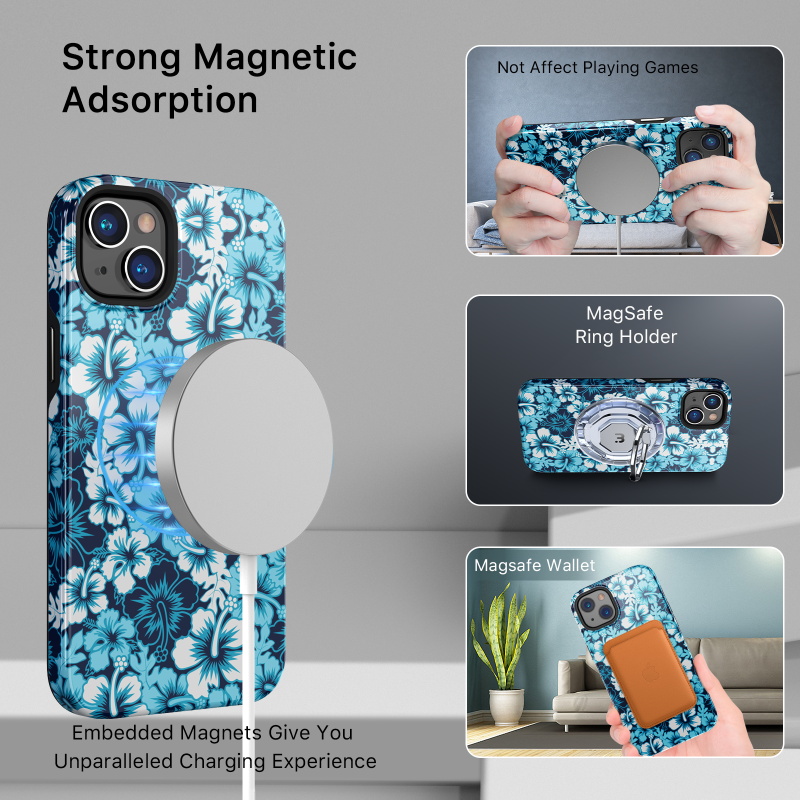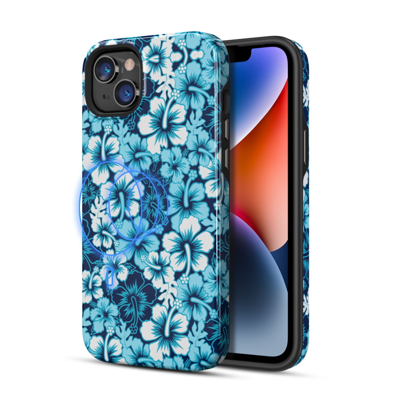 MyBat Pro Fuse Series MagSafe Case for Apple iPhone 14 Plus (6.7) - Blue Hibiscus