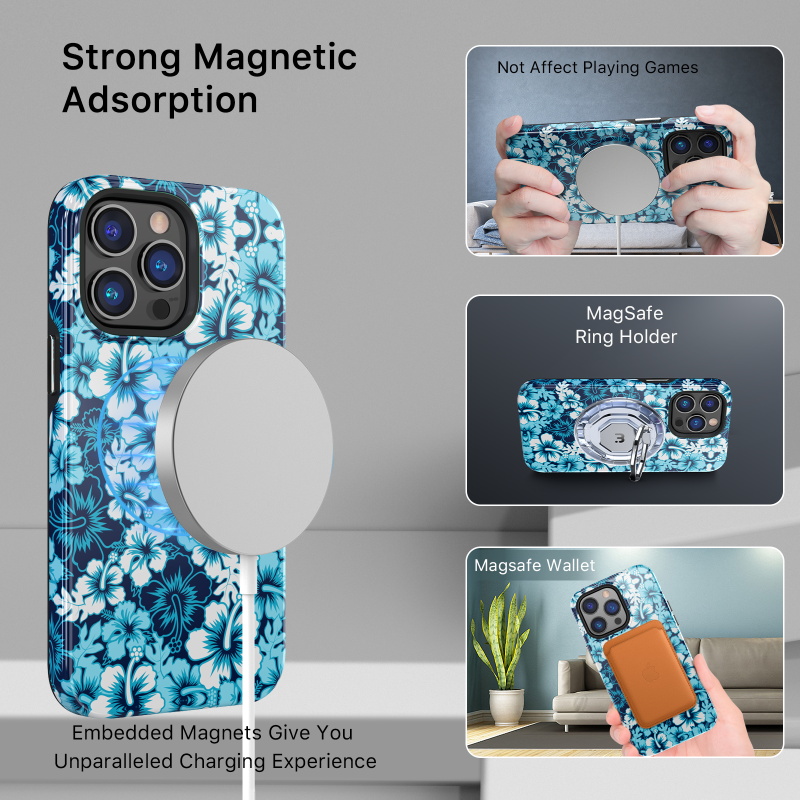 MyBat Pro Fuse Series MagSafe Case for Apple iPhone 14 Pro Max (6.7) - Blue Hibiscus
