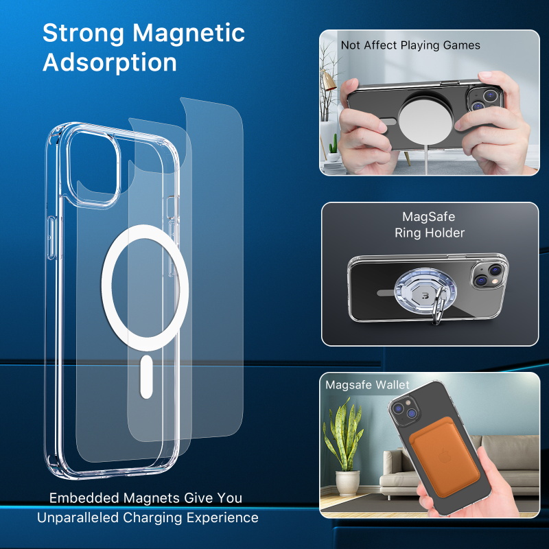 Compatible with Strong MagSafe Charging -Upgraded embedded strong magnetic ring, this magsafe case improve old recessed version, 37 pcs built-in magnets. You can enjoy fast charging as no case on with all wireless accessories. Support all kinds of magnetic accessories like with magsafe, with magsafe wallet, with magnetic car mount. Make charger much faster and easier. CLEAR & ANTI-YELLOW - Our clear case ensure long-lasting clear and prevent yellowing caused by ultraviolet rays, which allow you admire original beauty of iPhone. DROP PROTECTION - Designed to disperse severe shocks, the backplane is made with rigid thicker polycarbonate (1.5mm) and flexible shockproof TPU around the edge to create tough protection. SLIM PROFILE & RAISED BEZELS - Slim profile, minimal design and no extra bulk creates a sleek and subtle case that protects your device. Raised bezels for full protection. MyBat Pro offers an extended lifetime warranty for the Case, ensuring the best quality, performance, and customer satisfaction. Features: Impact & Shock Protection Raised Bezel Edges Non-Slip Bumper Grip Easy Access: Ports & Buttons +AttachMe Magnetic Ring Alignment MagSafe Compatible Ultra-Slim, Lightweight Design Hard PC + Soft TPU Lifetime Warranty