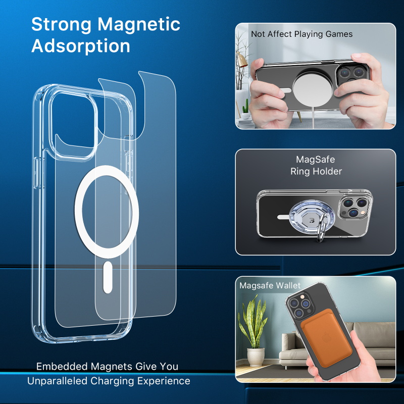Compatible with Strong MagSafe Charging -Upgraded embedded strong magnetic ring, this magsafe case improve old recessed version, 37 pcs built-in magnets. You can enjoy fast charging as no case on with all wireless accessories. Support all kinds of magnetic accessories like with magsafe, with magsafe wallet, with magnetic car mount. Make charger much faster and easier. CLEAR & ANTI-YELLOW - Our clear case ensure long-lasting clear and prevent yellowing caused by ultraviolet rays, which allow you admire original beauty of iPhone. DROP PROTECTION - Designed to disperse severe shocks, the backplane is made with rigid thicker polycarbonate (1.5mm) and flexible shockproof TPU around the edge to create tough protection. SLIM PROFILE & RAISED BEZELS - Slim profile, minimal design and no extra bulk creates a sleek and subtle case that protects your device. Raised bezels for full protection. MyBat Pro offers an extended lifetime warranty for the Case, ensuring the best quality, performance, and customer satisfaction. Features: Impact & Shock Protection Raised Bezel Edges Non-Slip Bumper Grip Easy Access: Ports & Buttons +AttachMe Magnetic Ring Alignment MagSafe Compatible Ultra-Slim, Lightweight Design Hard PC + Soft TPU Lifetime Warranty