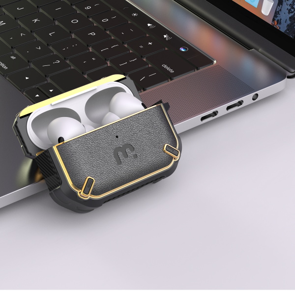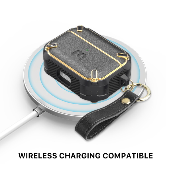 Offer a classic stylish, and elegant way to protect your customer's AirPods Pro with the Leather Armor Series Case from MyBat Pro. It is available in attractive packaging that makes it stand out on the shelf and shows off the product beautifully, making it an ideal addition to your inventory. As the Leather Armor Case for AirPods Pro blends elegance with protection, the case boasts a premium wear-resistant vegan leather exterior with gold accents that only gets better with age. A rugged TPU inner shell protects your customers' AirPods Pro against impacts, shocks, and drops. It is water-resistant, dust-proof, dirt-resistant, and scratch-resistant, so customers won't have to worry about getting scuffed up. The Leather Armor Case for AirPods Pro also comes with a metal carabiner to easily be attached to your customers' keys, bags, or belts. As the case has a convenient cut-out for the charging port, customers won't need to remove it for charging. It is also wireless charging compatible! MyBat Pro offers an extended lifetime warranty for the Leather Armor Case for AirPods Pro, ensuring the best quality, performance, and customer satisfaction. Features: Impact & Shock Protection Premium Vegan Leather Wear-Resistant Easy Access: Buttons & Ports Wireless Charging Compatible Quick Installation & Removal Keychain Included Lifetime Warranty
