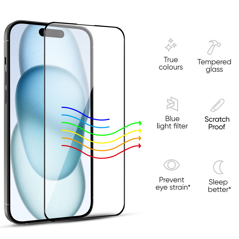 The LightArmor Tempered Glass Screen Protector, a cutting-edge solution that addresses not just protection but also visual well-being. This advanced protector not only safeguards screens from scratches and drops but also blocks harmful blue light emissions. The ultra-thin tempered glass, with its 9H hardness, guarantees top-notch screen defense. The oleophobic coating wards off fingerprints and smudges, ensuring a clear view. Deliver superior iPhone 15 (6.1) user experience by adding the LightArmor Protector to your product lineup. Backed by MyBat Pro’s limited lifetime warranty, the LightArmor Tempered Glass Screen Protector ensures the quality and performance your customers deserve. Stand behind a product that allows your customers to keep their screens and eyes protected. Features: Blue-Light Protection Anti-Glare Edge-To-Edge Full Coverage 9H Hardness Rating Multi-Layered 5X Stronger Than Standard Glass Scratch Resistant Impact & Shatter Protection Oleophobic Anti-Fingerprint Coating High-Definition Screen Clarity Incredibly Thin: 0.33mm Rounded Edges High-Response Touch Sensitivity Easy Bubble-Free Application Lifetime Warranty