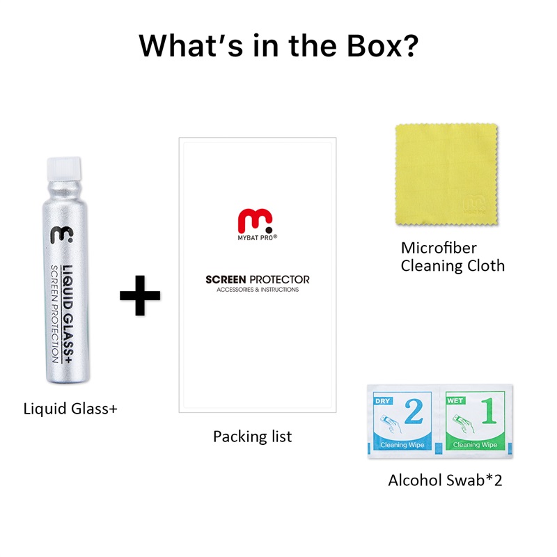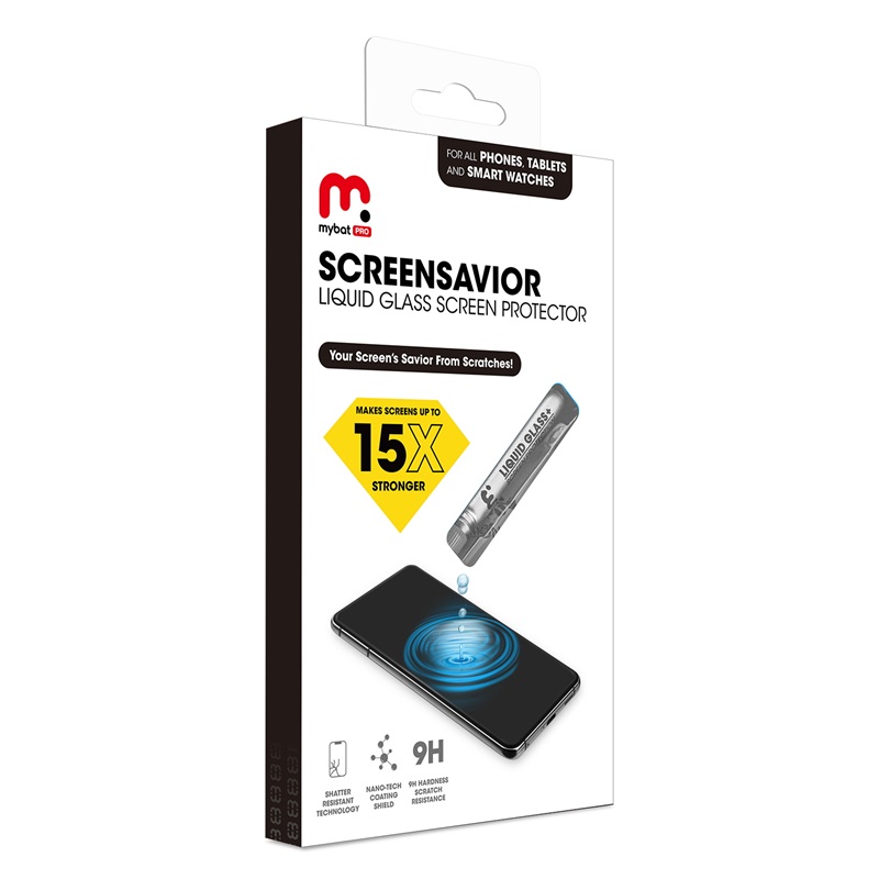 Refresh your customer’s screen protection! The MyBat Pro Liquid Glass+ Screen Protector serves as the perfect preventive barrier to help keep their phone, tablet, or smartwatch's glass touchscreen and camera lens in pristine condition. It is available in attractive packaging that makes it stand out on the shelf and shows off the product beautifully, making it an ideal addition to your inventory. Liquid Glass+ provides multi-layer protection by attaching a microscopic layer of Liquid Ceramic to your customer's screens or lenses to achieve scratchproof protection. Using a proprietary formula with an oleophobic coating, your customers will never have to worry about scratches, smudges, water stains, fingerprints, or dirt littering their screen again. Even with a case on, the Liquid Glass+ will never blur or obstruct the view of the screen and lens or limit any touch sensitivity. With the easy wipe-on application of the Liquid Glass+ Screen Protector, their devices will be protected in seconds! Features: Proprietary Liquid Ceramic Solution Innovative Nano-Coating 9H Hardness Rating Multi-Layered Scratch Resistant Oleophobic Anti-Fingerprint Coating High-Definition Screen Clarity High-Response Touch Sensitivity Easy Wipe-On Application Lifetime Warranty Package Includes: Liquid Glass+ Solution Microfiber Cleaning Cloth 2X Alcohol Swab *** Disclaimer - The MyBat Pro Warranty covers the Liquid Glass, not the device itself.