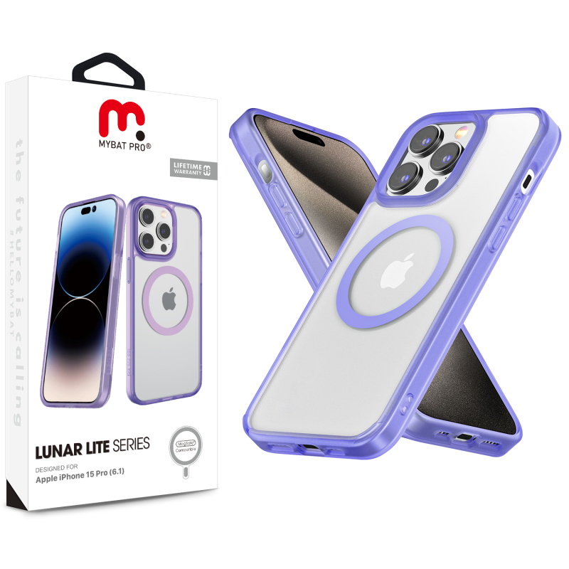 Offer your customers protection for their iPhone 15 Pro (6.1) that transcends the ordinary with the Lunar Lite Series MagSafe Phone Case. Combining a frosted or clear exterior with subtle lunar colored accents, this case strikes the perfect balance between style and functionality. The +AttachMe ring enables easy attachment to MagSafe chargers and mounts, while the slim design ensures hassle-free handling. With certified military-grade protection and a textured grip, your customers' phones remain shielded against scratches, bumps, and drops. Step up your product lineup with the Lunar Lite Series MagSafe Phone Case and deliver style and defense in one. MyBat Pro stands by the Lunar Lite Series MagSafe Phone Case with a limited lifetime warranty, ensuring top-notch quality, performance, and customer satisfaction. Features: MagSafe Compatible +AttachMe Magnetic Ring Alignment Military-Grade Drop Protection Shock & Impact Resistant Raised Bezel Edges & Camera Ring Slim Profile Design Easy Access: Ports & Buttons Premium Fingerprint-Resistant Material Ultra-Slim, Lightweight Quick Installation & Removal Lifetime Warranty