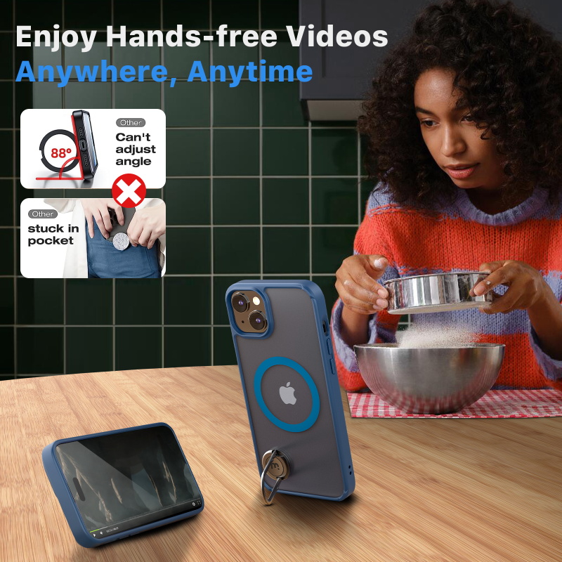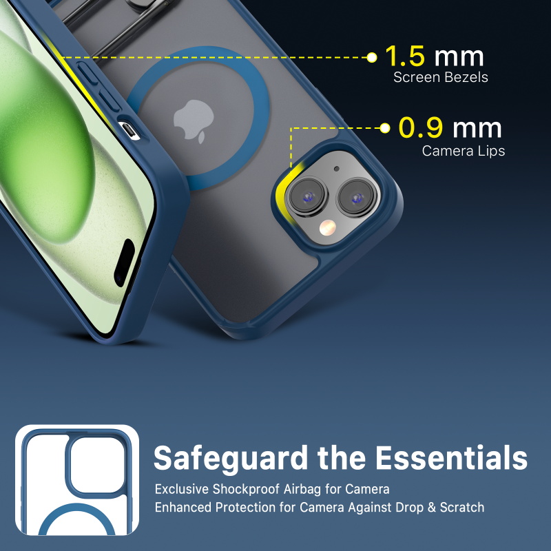 Your customers deserve protection that's out of this world for their iPhone 15 Plus (6.7) - and that's exactly what they will get with the Lunar Series MagSafe Phone Case! This premium phone case boasts a noir black frosted look with a subtle touch of lunar gray, making it the perfect combination of style and functionality. The 360-degree rotatable silver metal kickstand doubles as a finger hook or can be clipped onto a carabiner for hands-free convenience. And with the +AttachMe ring, you can easily attach your phone to MagSafe chargers and mounts. The kickstand also allows for easy viewing in portrait or landscape mode, making it perfect for watching videos, making video calls, or using your phone hands-free. The Lunar Series Magsafe Case offers certified military-grade protection and a non-slip textured grip, ensuring that their iPhone 15 Plus (6.7) stays safe from scratches, bumps, and drops. Stock up on the Lunar Series MagSafe Phone Case today and give your customers the protection and style they deserve! MyBat Pro offers a limited lifetime warranty for the Lunar Series MagSafe Phone Case, ensuring that your customers receive the best quality, performance, and customer satisfaction. Features: MagSafe Compatible +AttachMe Magnetic Ring Alignment Military-Grade Drop Protection Shock & Impact Resistant Raised Bezel Edges & Camera Ring 360° Ring Holder Foldout Kickstand Stand Portrait or Landscape Viewing Easy Access: Ports & Buttons Premium Fingerprint-Resistant Material Ultra-Slim, Lightweight Minimalist Design Quick Installation & Removal Lifetime Warranty