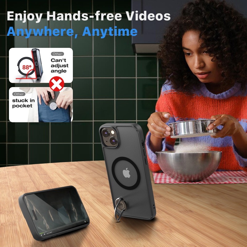 Your customers deserve protection that's out of this world for their iPhone 15 Plus (6.7) - and that's exactly what they will get with the Lunar Series MagSafe Phone Case! This premium phone case boasts a noir black frosted look with a subtle touch of lunar gray, making it the perfect combination of style and functionality. The 360-degree rotatable silver metal kickstand doubles as a finger hook or can be clipped onto a carabiner for hands-free convenience. And with the +AttachMe ring, you can easily attach your phone to MagSafe chargers and mounts. The kickstand also allows for easy viewing in portrait or landscape mode, making it perfect for watching videos, making video calls, or using your phone hands-free. The Lunar Series Magsafe Case offers certified military-grade protection and a non-slip textured grip, ensuring that their iPhone 15 Plus (6.7) stays safe from scratches, bumps, and drops. Stock up on the Lunar Series MagSafe Phone Case today and give your customers the protection and style they deserve! MyBat Pro offers a limited lifetime warranty for the Lunar Series MagSafe Phone Case, ensuring that your customers receive the best quality, performance, and customer satisfaction. Features: MagSafe Compatible +AttachMe Magnetic Ring Alignment Military-Grade Drop Protection Shock & Impact Resistant Raised Bezel Edges & Camera Ring 360° Ring Holder Foldout Kickstand Stand Portrait or Landscape Viewing Easy Access: Ports & Buttons Premium Fingerprint-Resistant Material Ultra-Slim, Lightweight Minimalist Design Quick Installation & Removal Lifetime Warranty