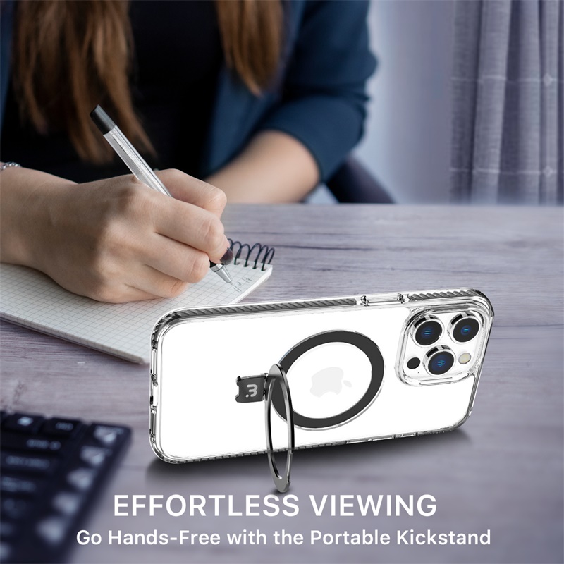 Get your customers hooked on magnetizing looks and unbeatable protection! The Lure Series MagSafe Phone Case seamlessly blends irresistible aesthetics with robust defense, making it a must-have accessory for any phone. Featuring an attractive clear design and a potent +AttachMe ring, this case effortlessly attaches to MagSafe chargers and mounts, ensuring a seamless and efficient charging experience for your valued customers. What truly distinguishes this case is its 120-degree rotating metal kickstand, providing hands-free convenience for various activities. Whether your customers are immersed in videos, making video calls, or simply need their phones in portrait or landscape mode, the kickstand offers unparalleled flexibility. Beyond the captivating design and functional kickstand, the Lure Series MagSafe case prioritizes the safety of your customers' phones. With raised edges, a camera ring, and a non-slip textured grip, it guarantees enhanced drop protection against scratches, bumps, and drops. Ensure your customers draw attention wherever they go with the enchanting charm of the Lure Series MagSafe Case on their phones! MyBat Pro offers a limited lifetime warranty for the Lure Series MagSafe Phone Case, ensuring that your customers receive the best quality, performance, and customer satisfaction. Features: MagSafe Compatible +AttachMe Magnetic Ring Alignment Shock & Impact Resistant Raised Bezel Edges & Camera Ring 120° Ring Holder Foldout Kickstand Stand Portrait or Landscape Viewing Easy Access: Ports & Buttons Premium Fingerprint-Resistant Material Ultra-Slim, Lightweight Minimalist Design Quick Installation & Removal Lifetime Warranty