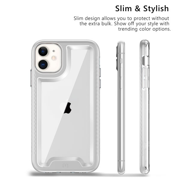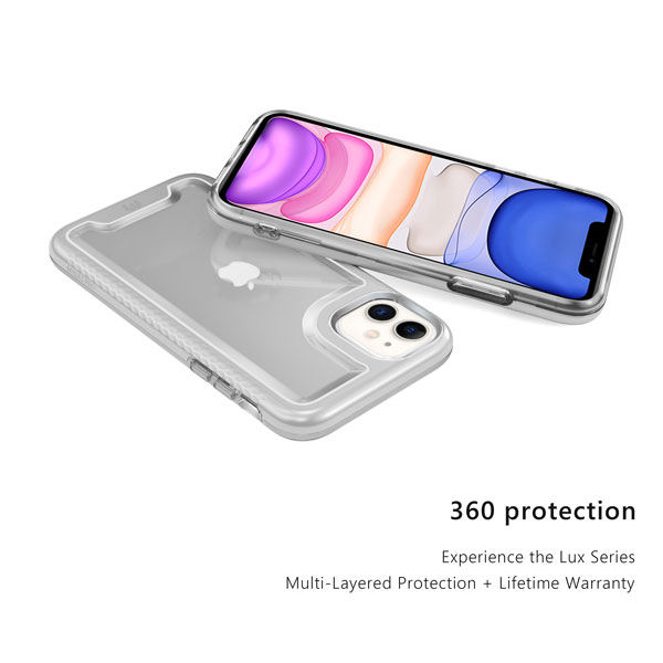 You can offer your customers even more luxury for their Apple iPhone 11 with the Lux series of cases from MyBat Pro. It is available in attractive packaging that makes it stand out on the shelf and shows off the product beautifully, making it an ideal addition to your inventory. Designed for those who are drawn to beauty over complexity, the modern and sleek Lux cases will display the regal color of your customer’s iPhone 11 with a fully transparent backing. Protect your customer's iPhone 11 from scratches, bumps, and drops with this stylish dual-layer design, a silver polycarbonate outer shell, and a padded TPU inner shell with 2X the durability of standard cases. The Lux clear case feature raised bezel edges and texturized ridged edges for additional safety while providing your customers easy access to all buttons and ports. The ultra-slim and lightweight design make it compatible with all wireless chargers, so they don’t have to remove the case every time they need to power up! The included high-grade tempered glass screen protector provides diamond-level protection, boasting an incredible 9H hardness and raised bezel edges to keep your customer's screen safe and pristine! MyBat Pro offers an extended lifetime warranty for the Lux Series Case For iPhone 11, ensuring the best quality, performance, and customer satisfaction. Features: Dual-Layered Certified Military-Grade Shock & Impact Protection Raised Bezel Edges Easy Access: Ports & Buttons Ultra-Slim, Lightweight & Minimal Design Premium Materials & Build Wireless Charging Compatible Quick Installation & Removal Lifetime Warranty