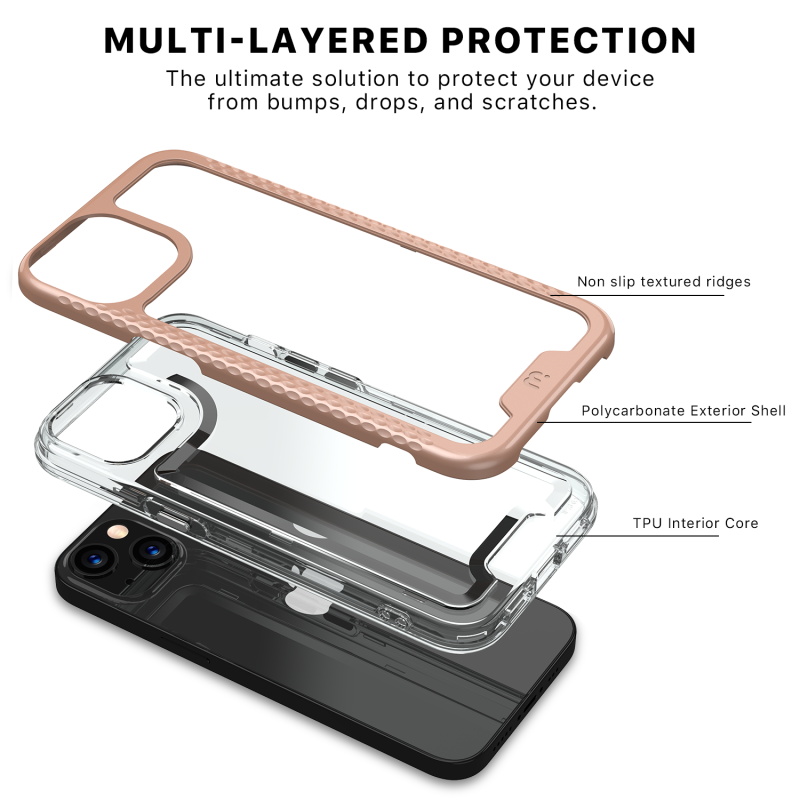 You can offer your customers even more luxury for their Apple iPhone 13 with the Lux series of cases from MyBat Pro. It is available in attractive packaging that makes it stand out on the shelf and shows off the product beautifully, making it an ideal addition to your inventory. Designed for those who are drawn to beauty over complexity, the modern and sleek Lux cases will display the regal color of your customer’s iPhone 13 with a fully transparent backing. Protect your customer's iPhone 13 from scratches, bumps, and drops with this stylish dual-layer design, a rose gold polycarbonate outer shell, and a padded TPU inner shell with 2X the durability of standard cases. The Lux clear case feature raised bezel edges and texturized ridged edges for additional safety while providing your customers easy access to all buttons and ports. The ultra-slim and lightweight design make it compatible with all wireless chargers, so they don’t have to remove the case every time they need to power up! The included high-grade tempered glass screen protector provides diamond-level protection, boasting an incredible 9H hardness and raised bezel edges to keep your customer's screen safe and pristine! MyBat Pro offers an extended lifetime warranty for the Lux Series Case For iPhone 13, ensuring the best quality, performance, and customer satisfaction. Features: Dual-Layered Certified Military-Grade Shock & Impact Protection Raised Bezel Edges Easy Access: Ports & Buttons Ultra-Slim, Lightweight & Minimal Design Premium Materials & Build Wireless Charging Compatible Quick Installation & Removal Lifetime Warranty