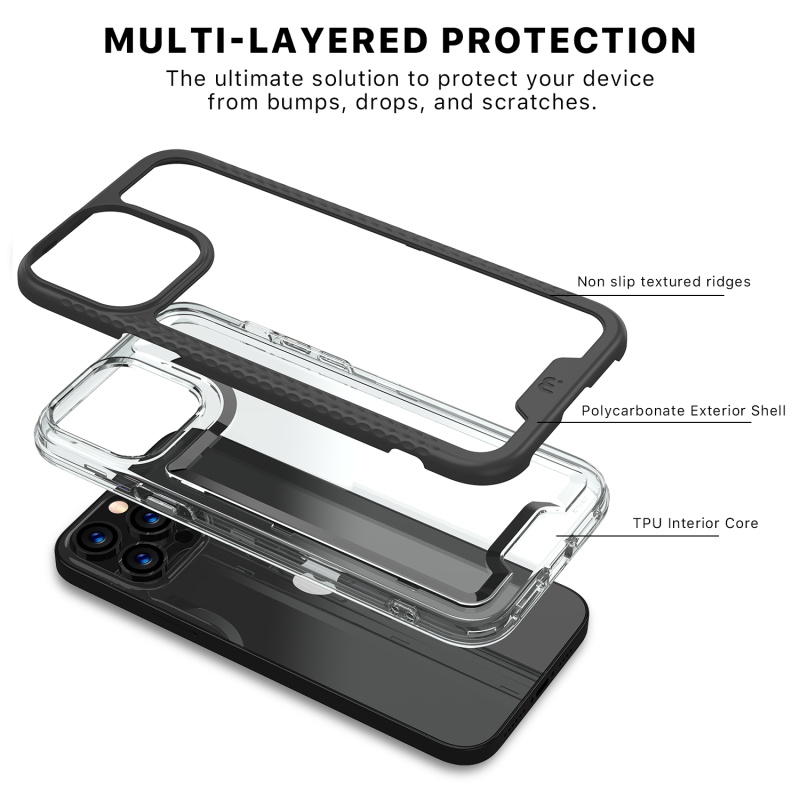 You can offer your customers even more luxury for their Apple iPhone 13 Pro Max with the Lux series of cases from MyBat Pro. It is available in attractive packaging that makes it stand out on the shelf and shows off the product beautifully, making it an ideal addition to your inventory. Designed for those who are drawn to beauty over complexity, the modern and sleek Lux cases will display the regal color of your customer’s iPhone 13 Pro Max with a fully transparent backing. Protect your customer's iPhone 13 Pro Max from scratches, bumps, and drops with this stylish dual-layer design, a black polycarbonate outer shell, and a padded TPU inner shell with 2X the durability of standard cases. The Lux clear case feature raised bezel edges and texturized ridged edges for additional safety while providing your customers easy access to all buttons and ports. The ultra-slim and lightweight design make it compatible with all wireless chargers, so they don’t have to remove the case every time they need to power up! The included high-grade tempered glass screen protector provides diamond-level protection, boasting an incredible 9H hardness and raised bezel edges to keep your customer's screen safe and pristine! MyBat Pro offers an extended lifetime warranty for the Lux Series Case For iPhone 13 Pro Max, ensuring the best quality, performance, and customer satisfaction. Features: Dual-Layered Certified Military-Grade Shock & Impact Protection Raised Bezel Edges Easy Access: Ports & Buttons Ultra-Slim, Lightweight & Minimal Design Premium Materials & Build Wireless Charging Compatible Quick Installation & Removal Lifetime Warranty