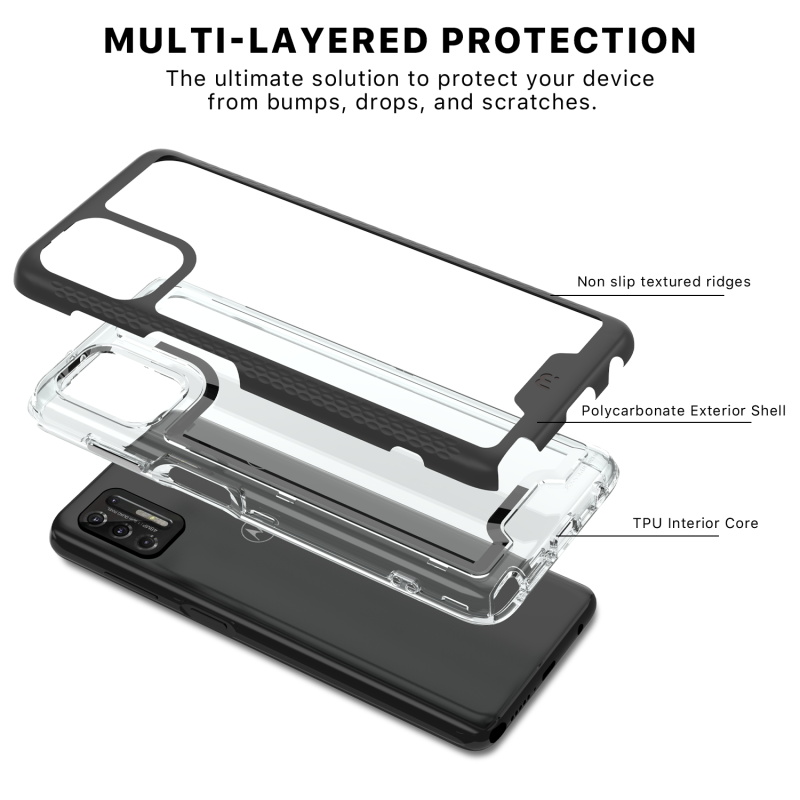 You can offer your customers even more luxury for their Motorola Moto G Stylus (2021) with the Lux series of cases from MyBat Pro. It is available in attractive packaging that makes it stand out on the shelf and shows off the product beautifully, making it an ideal addition to your inventory. Designed for those drawn to beauty over complexity, the modern and sleek Lux cases will display the regal color of your customer’s Moto G Stylus (2021) with fully transparent backing. Protect your customer's Moto G Stylus (2021) from scratches, bumps, and drops with this stylish dual-layer design, a black polycarbonate outer shell, and a padded TPU inner shell with 2X the durability of standard cases. The Lux clear case feature raised bezel edges and texturized ridged edges for additional safety while providing your customers easy access to all buttons and ports. The ultra-slim and lightweight design make it compatible with all wireless chargers, so they don’t have to remove the case when they need to power up! The included high-grade tempered glass screen protector provides diamond-level protection, boasting an incredible 9H hardness and raised bezel edges to keep your customer's screen safe and pristine! MyBat Pro offers an extended lifetime warranty for the Lux Series Case For Moto G Stylus (2021), ensuring the best quality, performance, and customer satisfaction. Features: Dual-Layered Certified Military-Grade Shock & Impact Protection Raised Bezel Edges Easy Access: Ports & Buttons Ultra-Slim, Lightweight & Minimal Design Premium Materials & Build Wireless Charging Compatible Quick Installation & Removal Lifetime Warranty