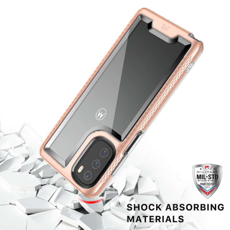 You can offer your customers even more luxury for their Motorola Moto 4G (2022) with the Lux series of cases from MyBat Pro. It is available in attractive packaging that makes it stand out on the shelf and shows off the product beautifully, making it an ideal addition to your inventory. Designed for those drawn to beauty over complexity, the modern and sleek Lux cases will display the regal color of your customer’s Moto 4G (2022) with fully transparent backing. Protect your customer's Moto 4G (2022) from scratches, bumps, and drops with this stylish dual-layer design, a rose gold polycarbonate outer shell, and a padded TPU inner shell with 2X the durability of standard cases. The Lux clear case feature raised bezel edges and texturized ridged edges for additional safety while providing your customers easy access to all buttons and ports. The ultra-slim and lightweight design make it compatible with all wireless chargers, so they don’t have to remove the case when they need to power up! The included high-grade tempered glass screen protector provides diamond-level protection, boasting an incredible 9H hardness and raised bezel edges to keep your customer's screen safe and pristine! MyBat Pro offers an extended lifetime warranty for the Lux Series Case For Moto 4G (2022), ensuring the best quality, performance, and customer satisfaction. Features: Dual-Layered Certified Military-Grade Shock & Impact Protection Raised Bezel Edges Easy Access: Ports & Buttons Ultra-Slim, Lightweight & Minimal Design Premium Materials & Build Wireless Charging Compatible Quick Installation & Removal Lifetime Warranty