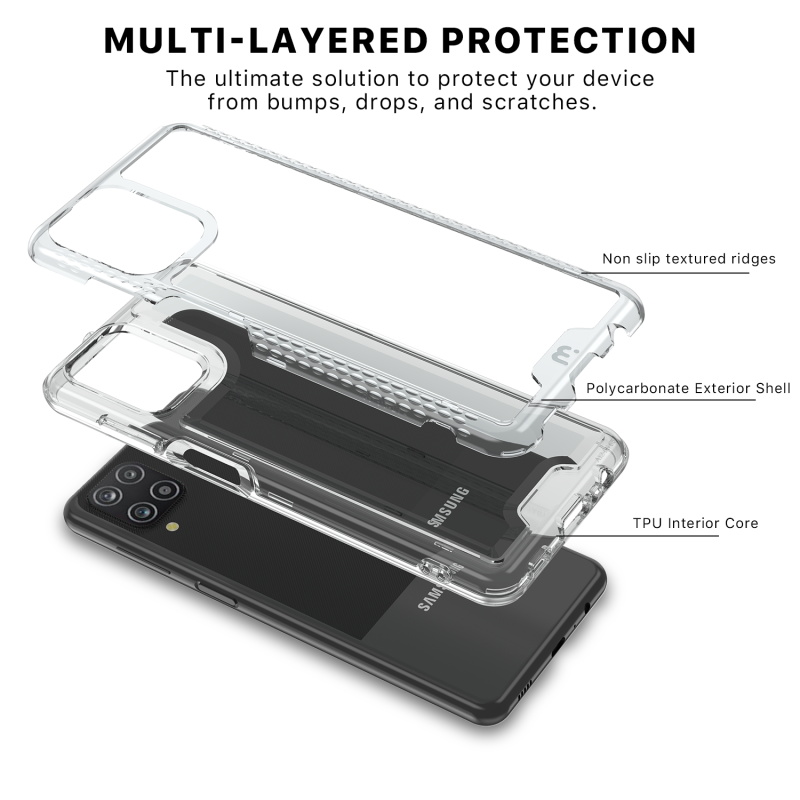 You can offer your customers even more luxury for their Samsung Galaxy A12 5G with the Lux series of cases from MyBat Pro. It is available in attractive packaging that makes it stand out on the shelf and shows off the product beautifully, making it an ideal addition to your inventory. Designed for those who are drawn to beauty over complexity, the modern and sleek Lux cases will display the regal color of your customer’s Galaxy A12 5G with a fully transparent backing. Protect your customer's Galaxy A12 5G from scratches, bumps, and drops with this stylish dual-layer design, a clear polycarbonate outer shell, and a padded TPU inner shell with 2X the durability of standard cases. The Lux clear case feature raised bezel edges and texturized ridged edges for additional safety while providing your customers easy access to all buttons and ports. Compatible with all wireless chargers, the ultra-slim and lightweight design makes it so they don’t have to remove the case every time they need to power up! The included high-grade tempered glass screen protector provides diamond-level protection, boasting an incredible 9H hardness and raised bezel edges to keep your customer's screen safe and pristine! MyBat Pro offers an extended lifetime warranty for the Lux Series Case For Galaxy A12 5G, ensuring the best quality, performance, and customer satisfaction. Features: Dual-Layered Certified Military-Grade Shock & Impact Protection Raised Bezel Edges Easy Access: Ports & Buttons Ultra-Slim, Lightweight & Minimal Design Premium Materials & Build Wireless Charging Compatible Quick Installation & Removal Lifetime Warranty
