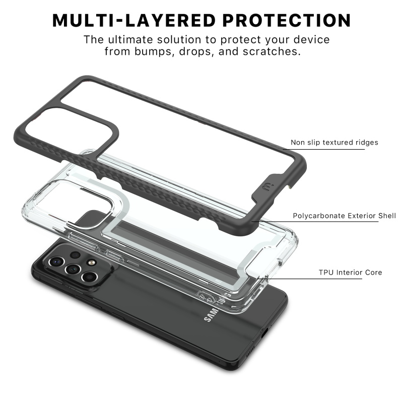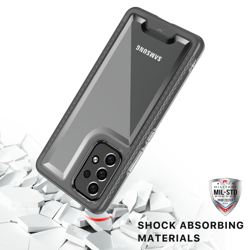 You can offer your customers even more luxury for their Samsung Galaxy A53 5G with the Lux series of cases from MyBat Pro. It is available in attractive packaging that makes it stand out on the shelf and shows off the product beautifully, making it an ideal addition to your inventory. Designed for those who are drawn to beauty over complexity, the modern and sleek Lux cases will display the regal color of your customer’s Galaxy A53 5G with a fully transparent backing. Protect your customer's Galaxy A53 5G from scratches, bumps, and drops with this stylish dual-layer design, a black polycarbonate outer shell, and a padded TPU inner shell with 2X the durability of standard cases. The Lux clear case feature raised bezel edges and texturized ridged edges for additional safety while providing your customers easy access to all buttons and ports. Compatible with all wireless chargers, the ultra-slim and lightweight design makes it so they don’t have to remove the case every time they need to power up! The included high-grade tempered glass screen protector provides diamond-level protection, boasting an incredible 9H hardness and raised bezel edges to keep your customer's screen safe and pristine! MyBat Pro offers an extended lifetime warranty for the Lux Series Case For Galaxy A53 5G, ensuring the best quality, performance, and customer satisfaction. Features: Dual-Layered Certified Military-Grade Shock & Impact Protection Raised Bezel Edges Easy Access: Ports & Buttons Ultra-Slim, Lightweight & Minimal Design Premium Materials & Build Wireless Charging Compatible Quick Installation & Removal Lifetime Warranty