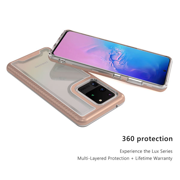 You can offer your customers even more luxury for their Samsung Galaxy S20 Ultra with the Lux series of cases from MyBat Pro. It is available in attractive packaging that makes it stand out on the shelf and shows off the product beautifully, making it an ideal addition to your inventory. Designed for those who are drawn to beauty over complexity, the modern and sleek Lux cases will display the regal color of your customer’s Galaxy S20 Ultra with a fully transparent backing. Protect your customer's Galaxy S20 Ultra from scratches, bumps, and drops with this stylish dual-layer design, a rose gold polycarbonate outer shell, and a padded TPU inner shell with 2X the durability of standard cases. The Lux clear case feature raised bezel edges and texturized ridged edges for additional safety while providing your customers easy access to all buttons and ports. Compatible with all wireless chargers, the ultra-slim and lightweight design makes it so they don’t have to remove the case every time they need to power up! MyBat Pro offers an extended lifetime warranty for the Lux Series Case For Galaxy S20 Ultra, ensuring the best quality, performance, and customer satisfaction. Features: Dual-Layered Certified Military-Grade Shock & Impact Protection Raised Bezel Edges Easy Access: Ports & Buttons Ultra-Slim, Lightweight & Minimal Design Premium Materials & Build Wireless Charging Compatible Quick Installation & Removal Lifetime Warranty