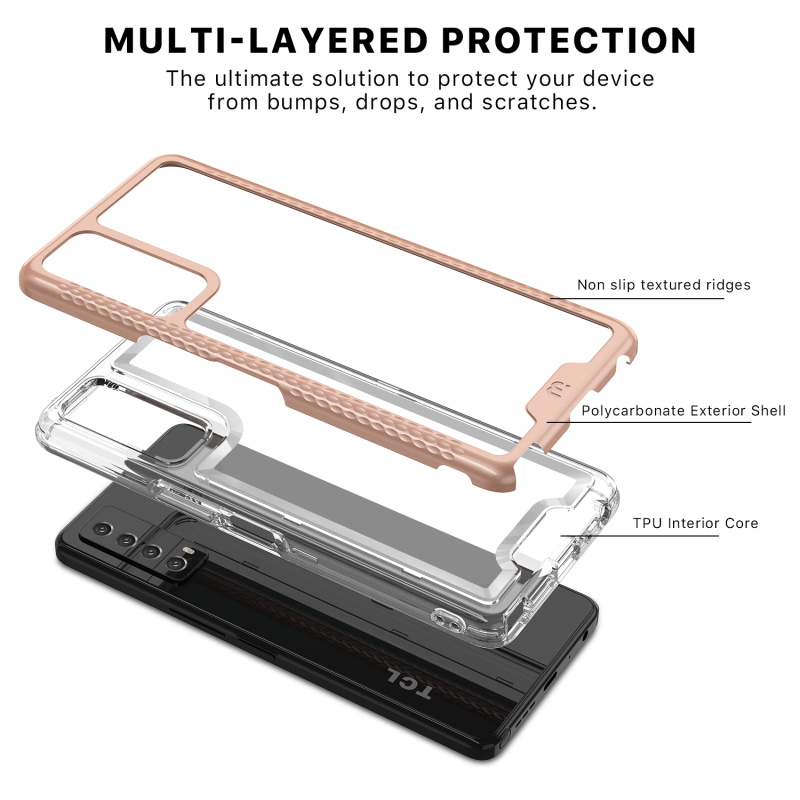 You can offer your customers even more luxury for their TCL / Stylus 5G with the Lux series of cases from MyBat Pro. It is available in attractive packaging that makes it stand out on the shelf and shows off the product beautifully, making it an ideal addition to your inventory. Designed for those who are drawn to beauty over complexity, the modern and sleek Lux cases will display the regal color of your customer’s TCL / Stylus 5G with a fully transparent backing. Protect your customer's TCL / Stylus 5G from scratches, bumps, and drops with this stylish dual-layer design, a rose gold polycarbonate outer shell, and a padded TPU inner shell with 2X the durability of standard cases. The Lux clear case feature raised bezel edges and texturized ridged edges for additional safety while providing your customers easy access to all buttons and ports. Compatible with all wireless chargers, the ultra-slim and lightweight design makes it so they don’t have to remove the case every time they need to power up! The included high-grade tempered glass screen protector provides diamond-level protection, boasting an incredible 9H hardness and raised bezel edges to keep your customer's screen safe and pristine! MyBat Pro offers an extended lifetime warranty for the Lux Series Case For TCL / Stylus 5G, ensuring the best quality, performance, and customer satisfaction. Features: Dual-Layered Certified Military-Grade Shock & Impact Protection Raised Bezel Edges Easy Access: Ports & Buttons Ultra-Slim, Lightweight & Minimal Design Premium Materials & Build Wireless Charging Compatible Quick Installation & Removal Lifetime Warranty