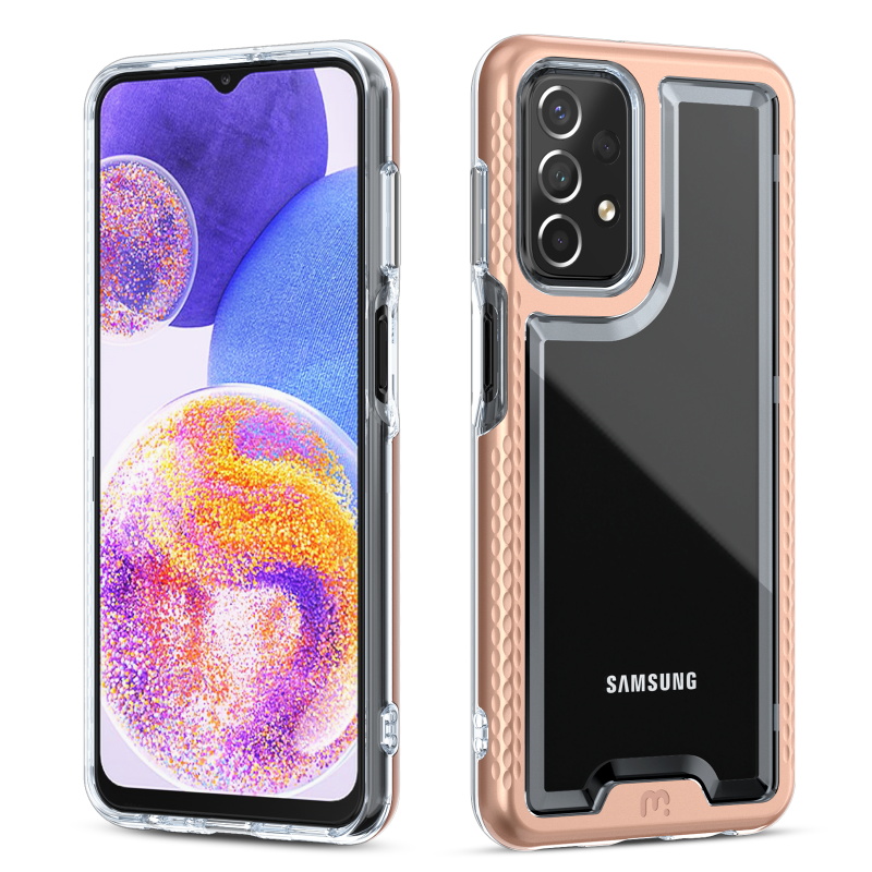 You can offer your customers even more luxury for their Samsung Galaxy A23 5G with the Lux series of cases from MyBat Pro. It is available in attractive packaging that makes it stand out on the shelf and shows off the product beautifully, making it an ideal addition to your inventory. Designed for those who are drawn to beauty over complexity, the modern and sleek Lux cases will display the regal color of your customer’s Galaxy A23 5G with a fully transparent backing. Protect your customer's Galaxy A23 5G from scratches, bumps, and drops with this stylish dual-layer design, a rose gold polycarbonate outer shell, and a padded TPU inner shell with 2X the durability of standard cases. The Lux clear case feature raised bezel edges and texturized ridged edges for additional safety while providing your customers easy access to all buttons and ports. Compatible with all wireless chargers, the ultra-slim and lightweight design makes it so they don’t have to remove the case every time they need to power up! MyBat Pro offers an extended lifetime warranty for the Lux Series Case For Galaxy A23 5G, ensuring the best quality, performance, and customer satisfaction. Features: Dual-Layered Certified Military-Grade Shock & Impact Protection Raised Bezel Edges Easy Access: Ports & Buttons Ultra-Slim, Lightweight & Minimal Design Premium Materials & Build Wireless Charging Compatible Quick Installation & Removal Lifetime Warranty