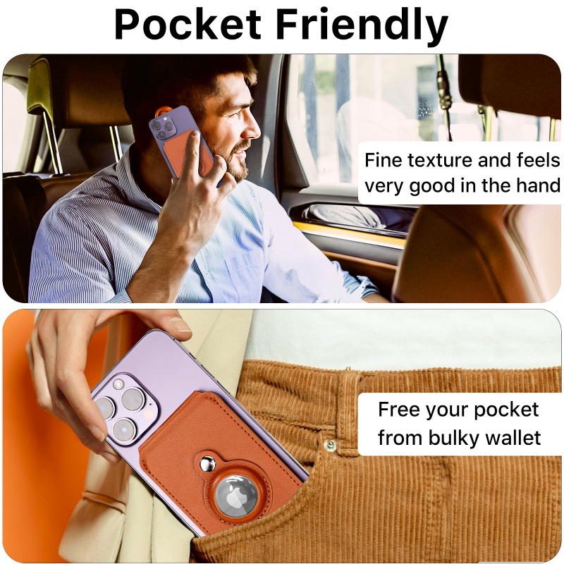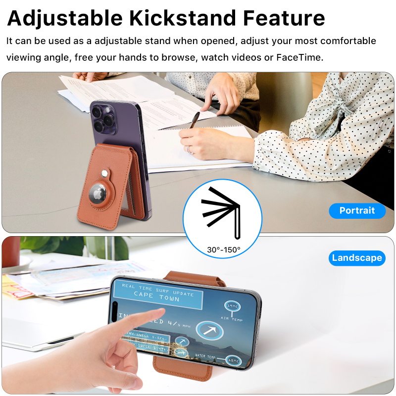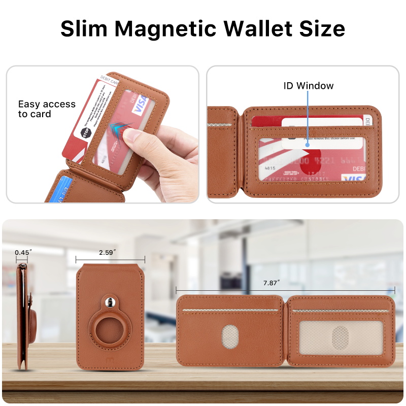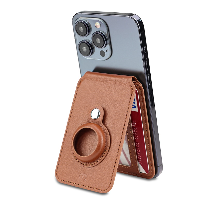 MyBat Pro Lychee Pattern Magnetic MagSafe Folding Card Holder with Tracker Case for Apple AirTag - Brown