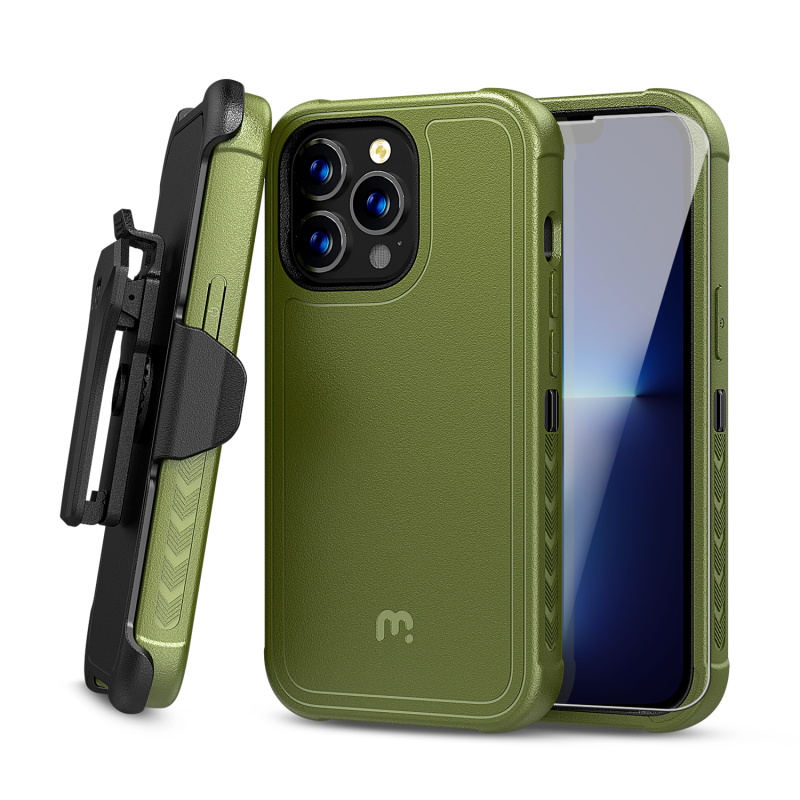 MyBat Pro Maverick Series Case w/ Holster and Tempered Glass for Apple iPhone 13 Pro Max (6.7) - Army Green