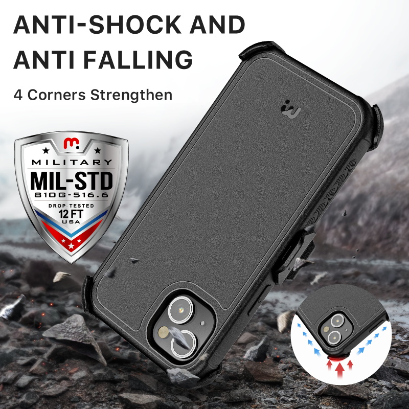 Gear up your customers' Apple iPhone 14 (6.1) with the Maverick Series Case from MyBat Pro, the ultimate rugged military-grade phone case built to withstand all treks, trails, and paths. It is available in attractive packaging that makes it stand out on the shelf and shows off the product beautifully, making it an ideal addition to your inventory.The Maverick Series iPhone 14 (6.1) Case provides the perfect barrier shielding for your customer’s iPhone 14 (6.1) with military-grade protection. The triple-layer construction of the case, including a rugged army green TPE backing shell, an anti-shock polycarbonate inner shell, and a polycarbonate exterior shell, provides the ultimate protection against drops, scratches, and cracks. They will experience the perfect in-hand feel with textured edges and a non-slip bumper grip for easy access to all buttons and ports. They can also attach the Maverick Series iPhone 14 (6.1) Case and go anywhere using the 360° rotating holster clip or set it down and use it as a kickstand for convenient hands-free viewing. Designed from anti-microbial materials, the Maverick Series iPhone 14 (6.1) Case can ward off any threat, even microscopic. Customers will also experience diamond-level coverage with the included high-grade tempered glass screen protector, boasting a 9H hardness keeping their iPhone 14 (6.1) screen safe and pristine!MyBat Pro offers an extended lifetime warranty for the Maverick Series Case For iPhone 14 (6.1), ensuring the best quality, performance, and customer satisfaction.Features:Triple-LayeredCertified Military GradeImpact & Shock Shock ProtectionRaised Bezel EdgesNon-Slip Bumper GripEasy Access: Ports & ButtonsAnti-Microbial360° Rotating Holster Clip & KickstandIncludes 9H HD Tempered GlassLifetime Warranty